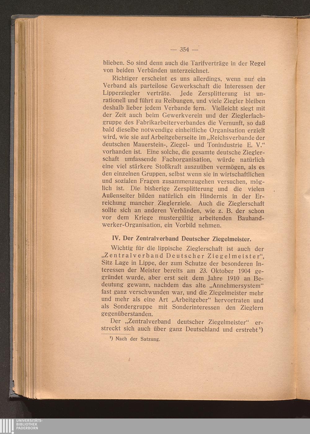 IV. Der Zentralverband Deutscher Ziegelmeister