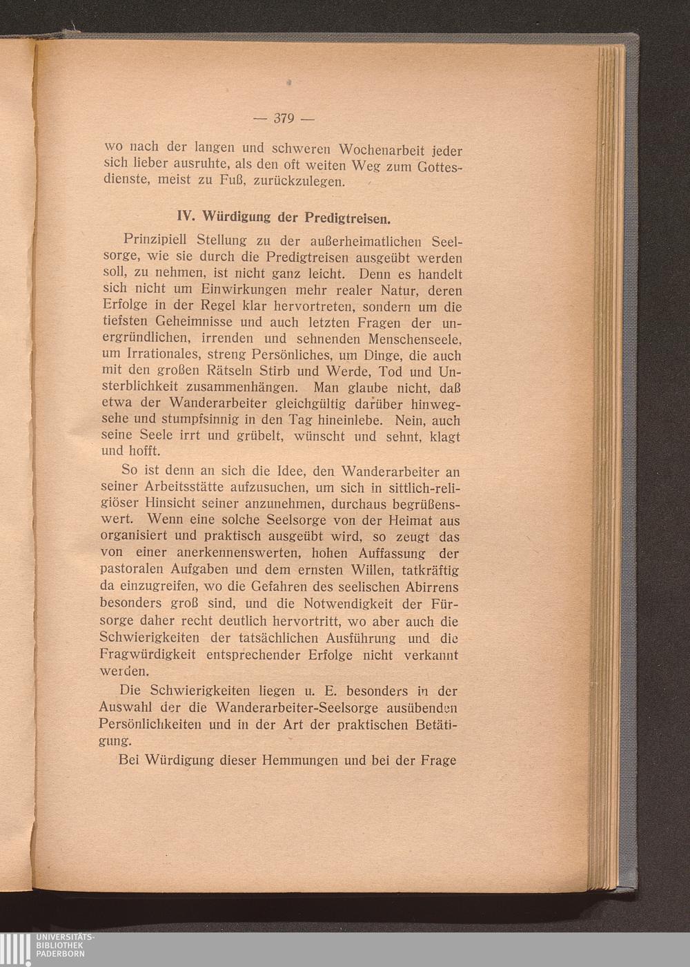 IV. Würdigung der Predigtreisen