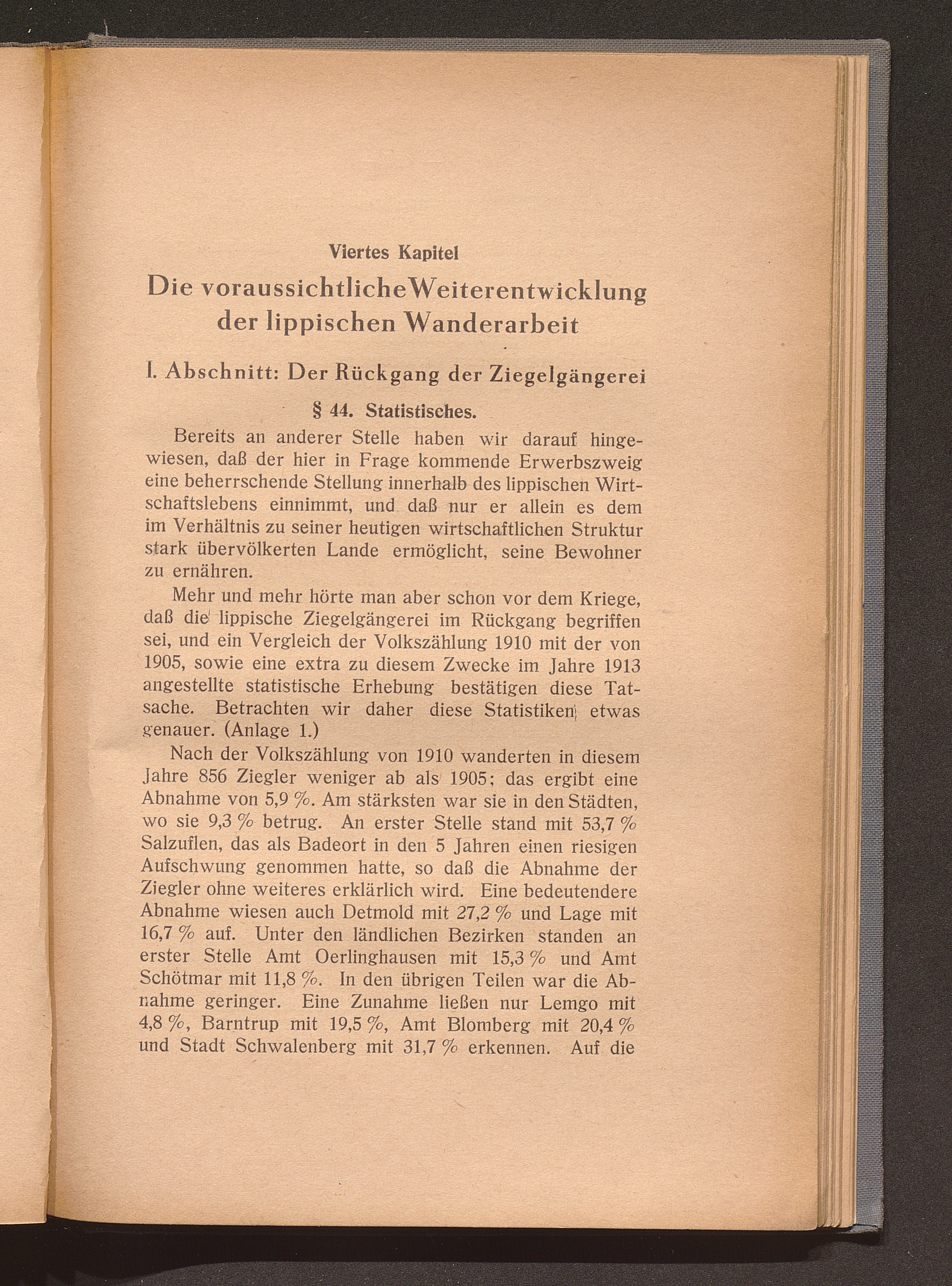 Viertes Kapitel. Die voraussichtliche Weiterentwicklung der lippischen Wanderarb[...]