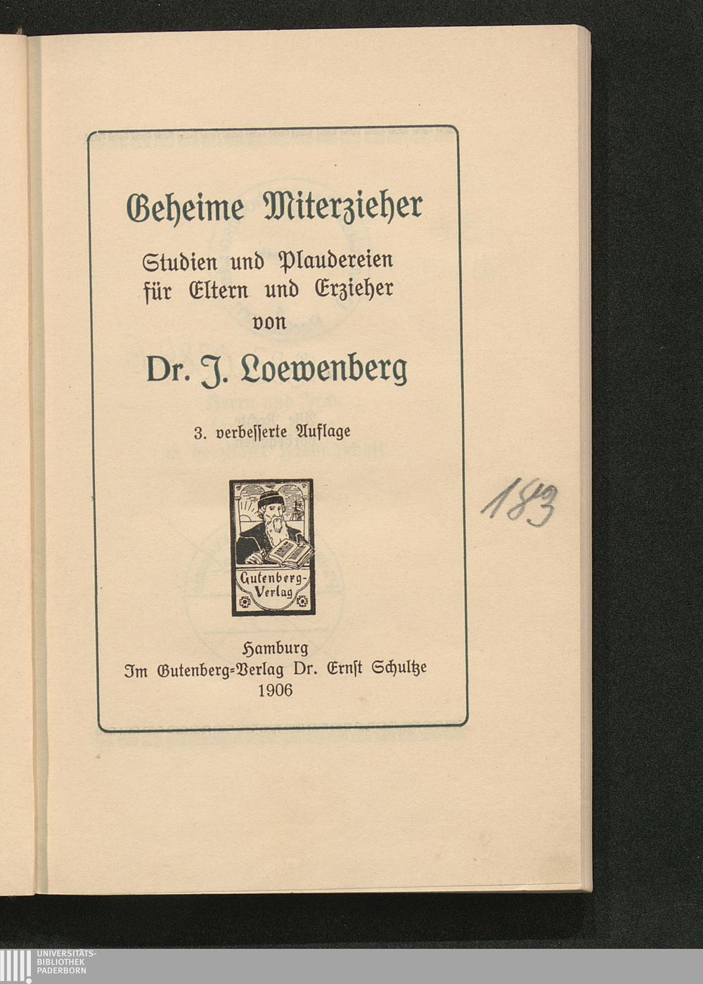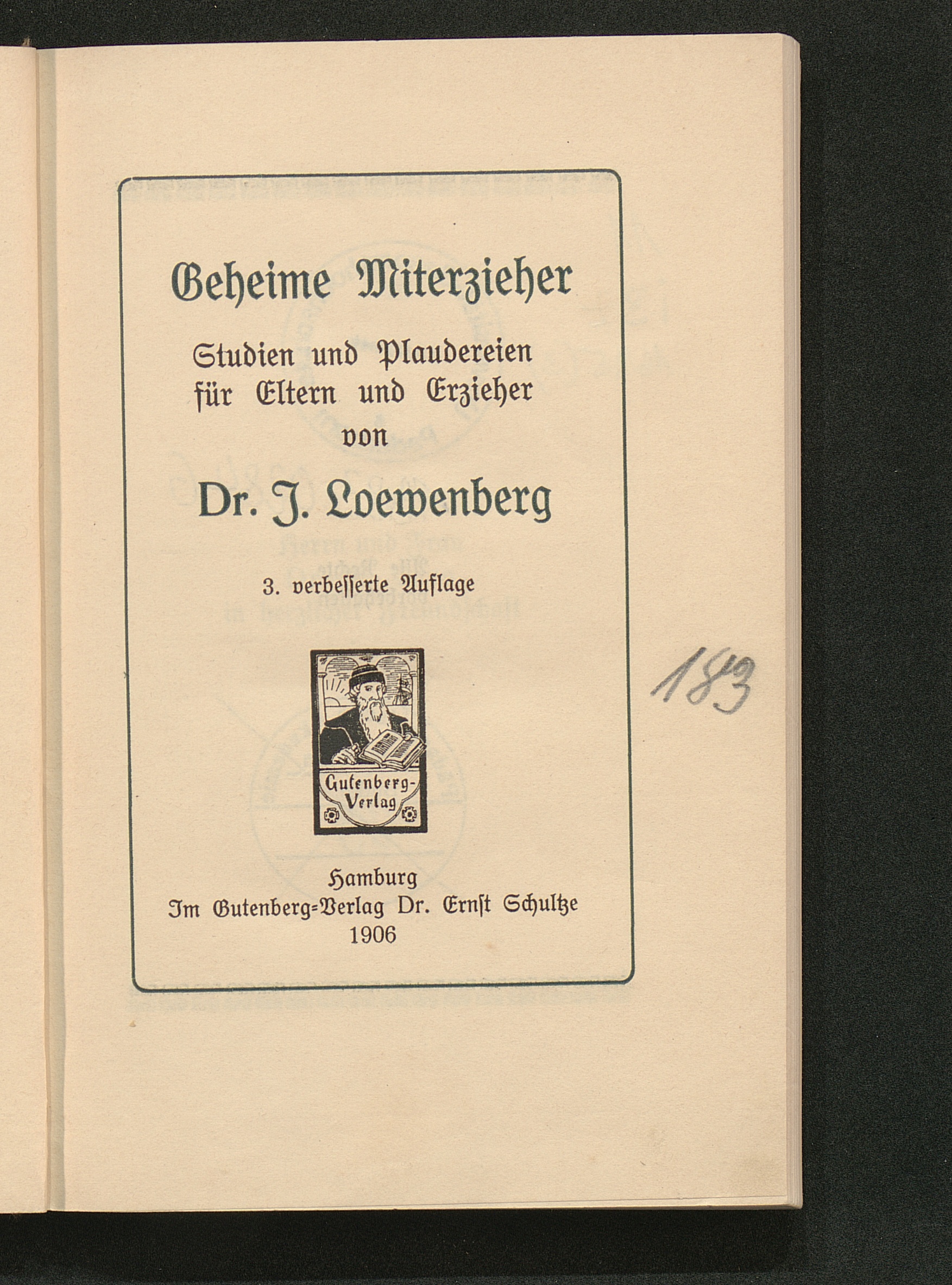 Geheime Miterzieher : Studien und Plaudereien für Eltern und Erzieher / von J. Loewenberg
