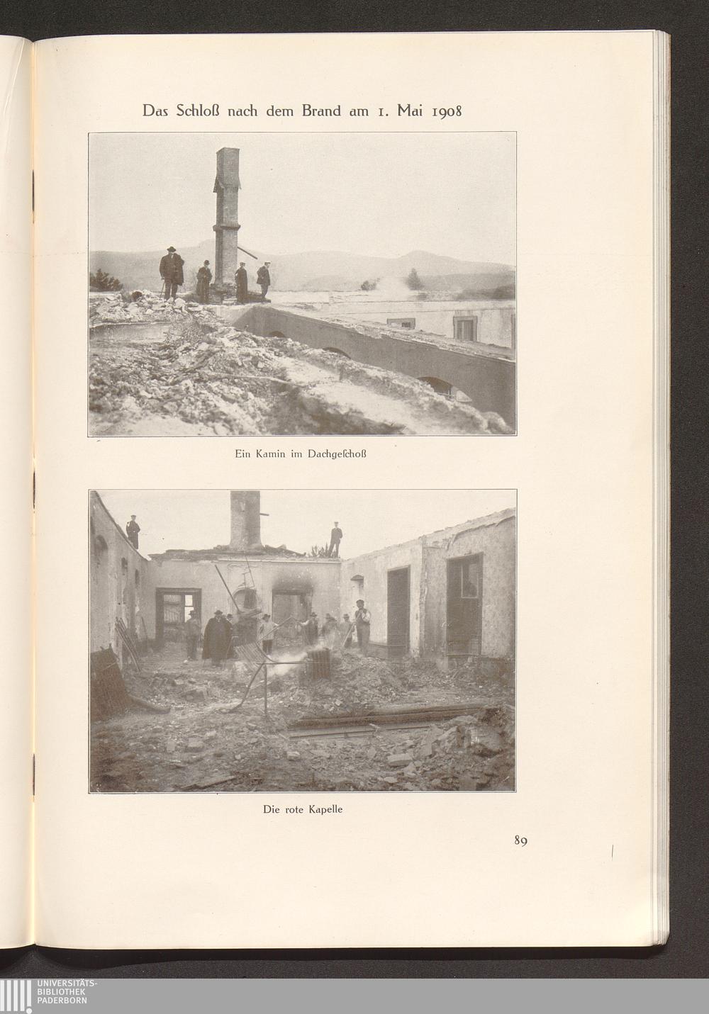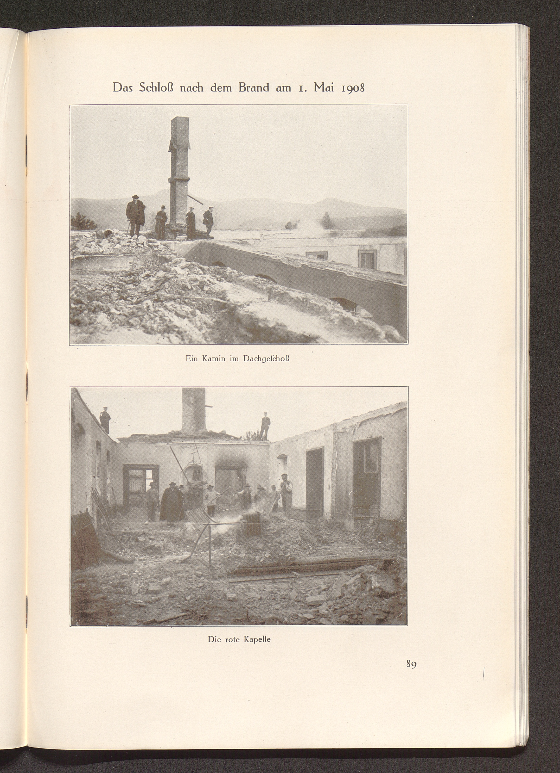 Das Schloß nach dem Brand am 1. Mai 1908
