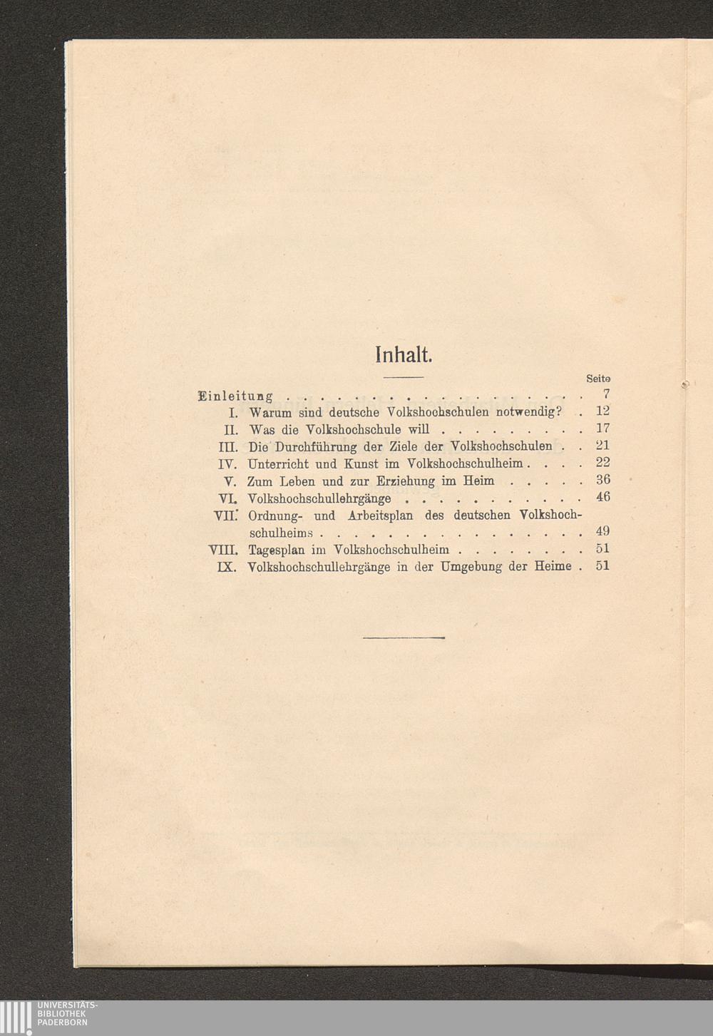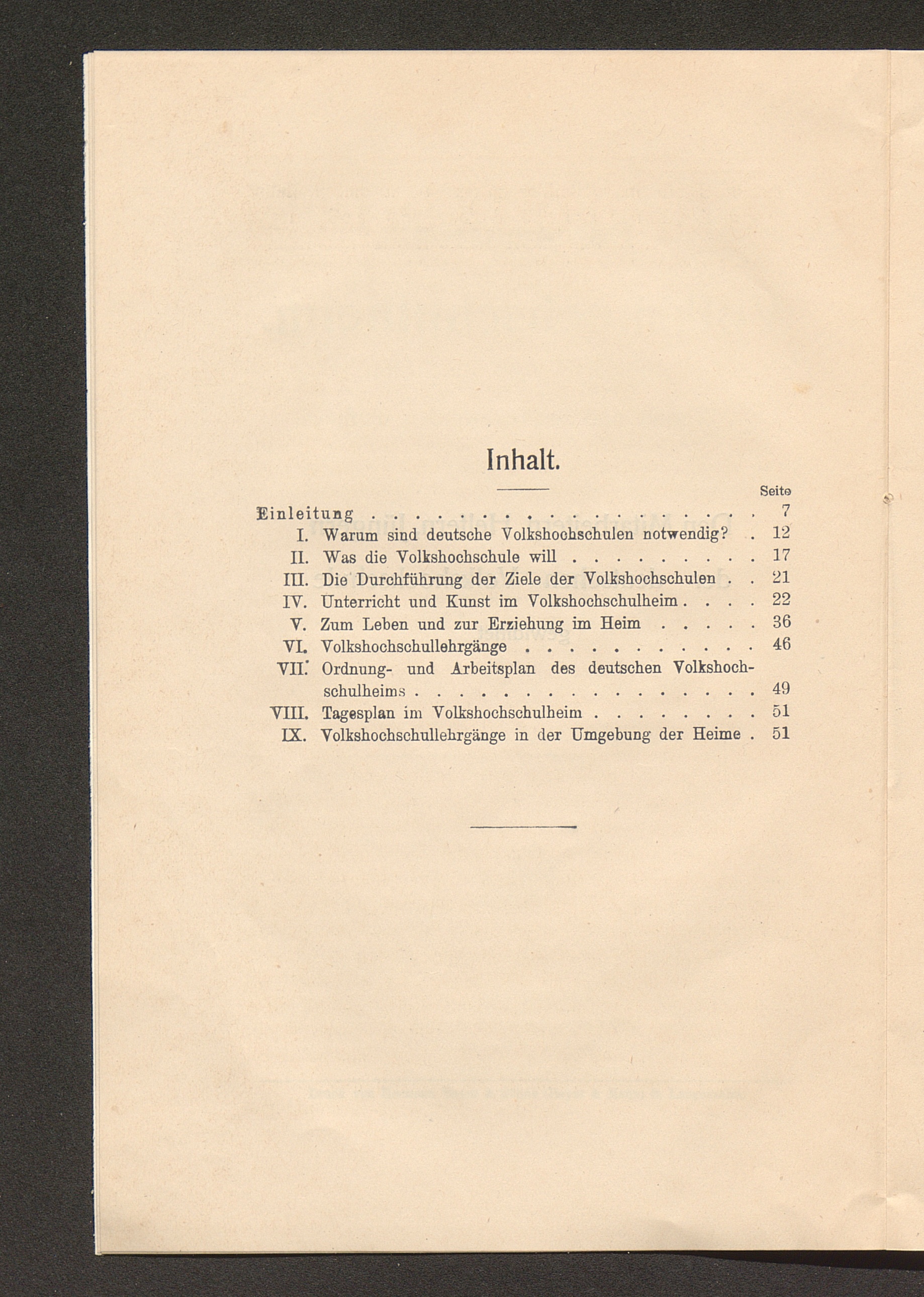 VII. Ordnung- und Arbeitsplan des deutschen Volkshochschulheims