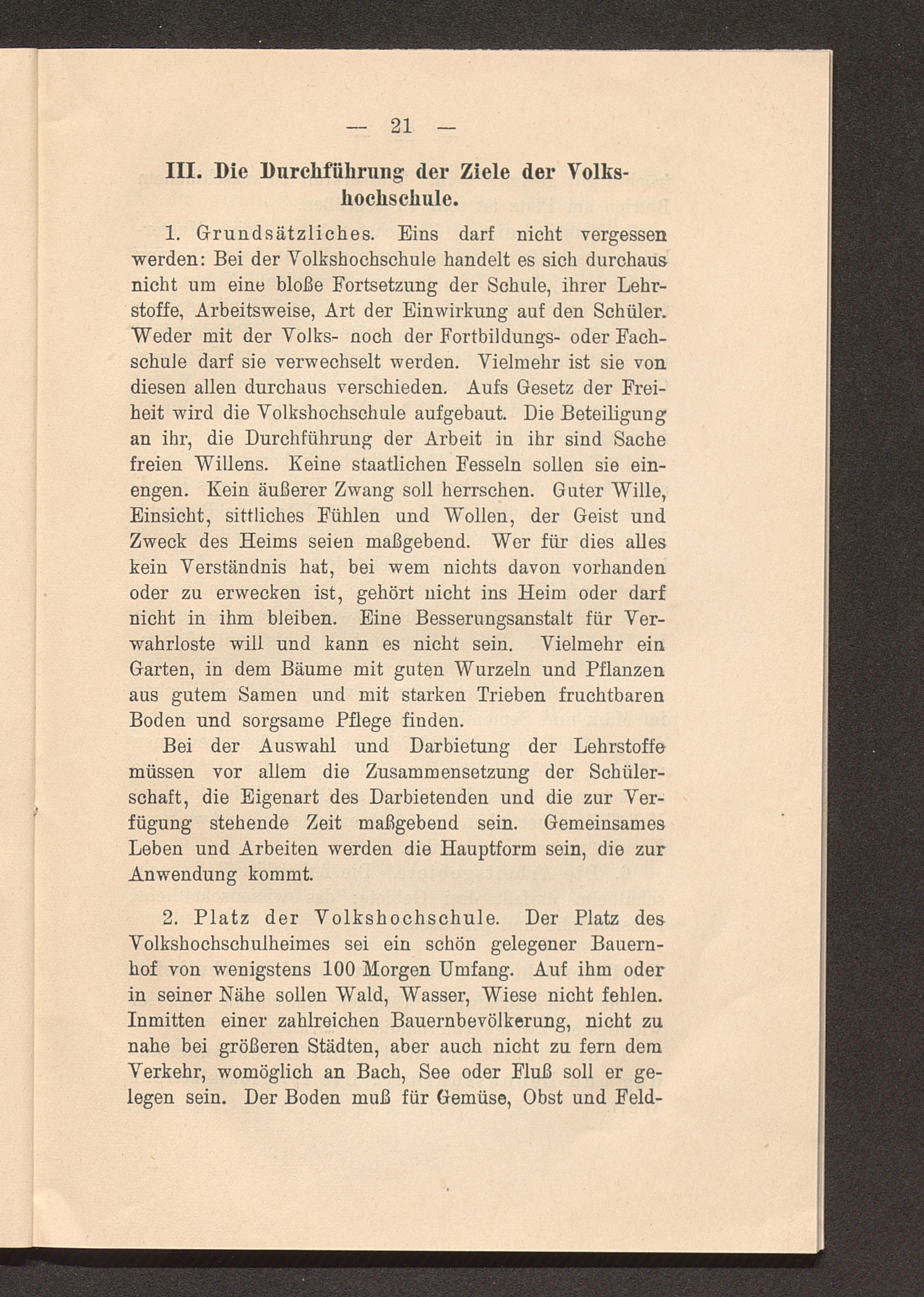 III. Die Durchführung der Ziele der Volkshochschulen