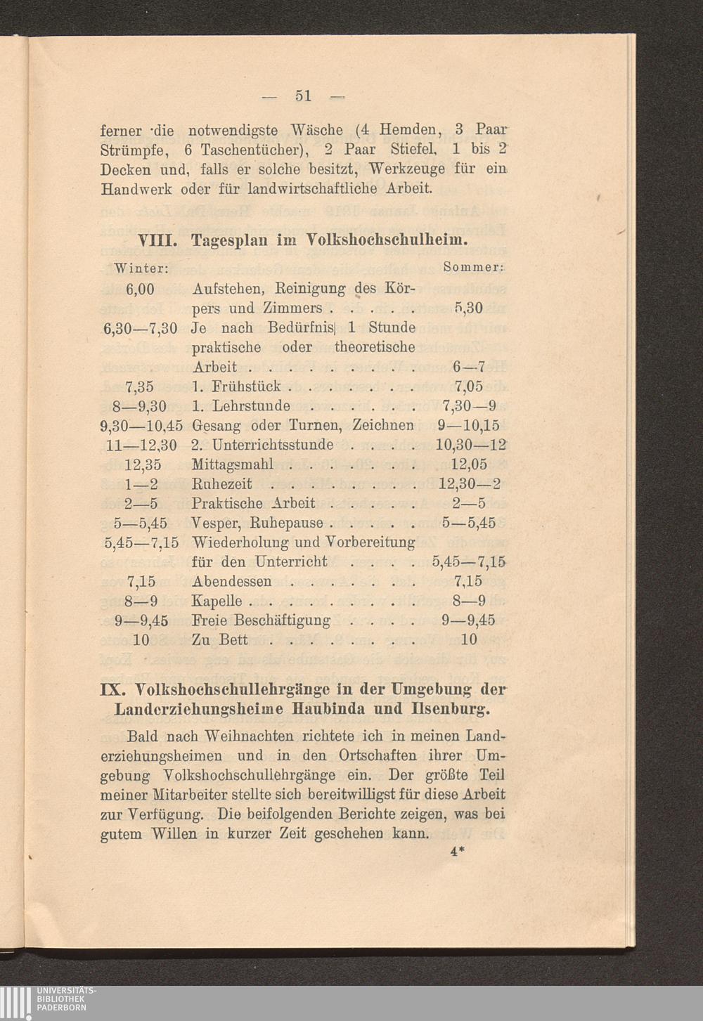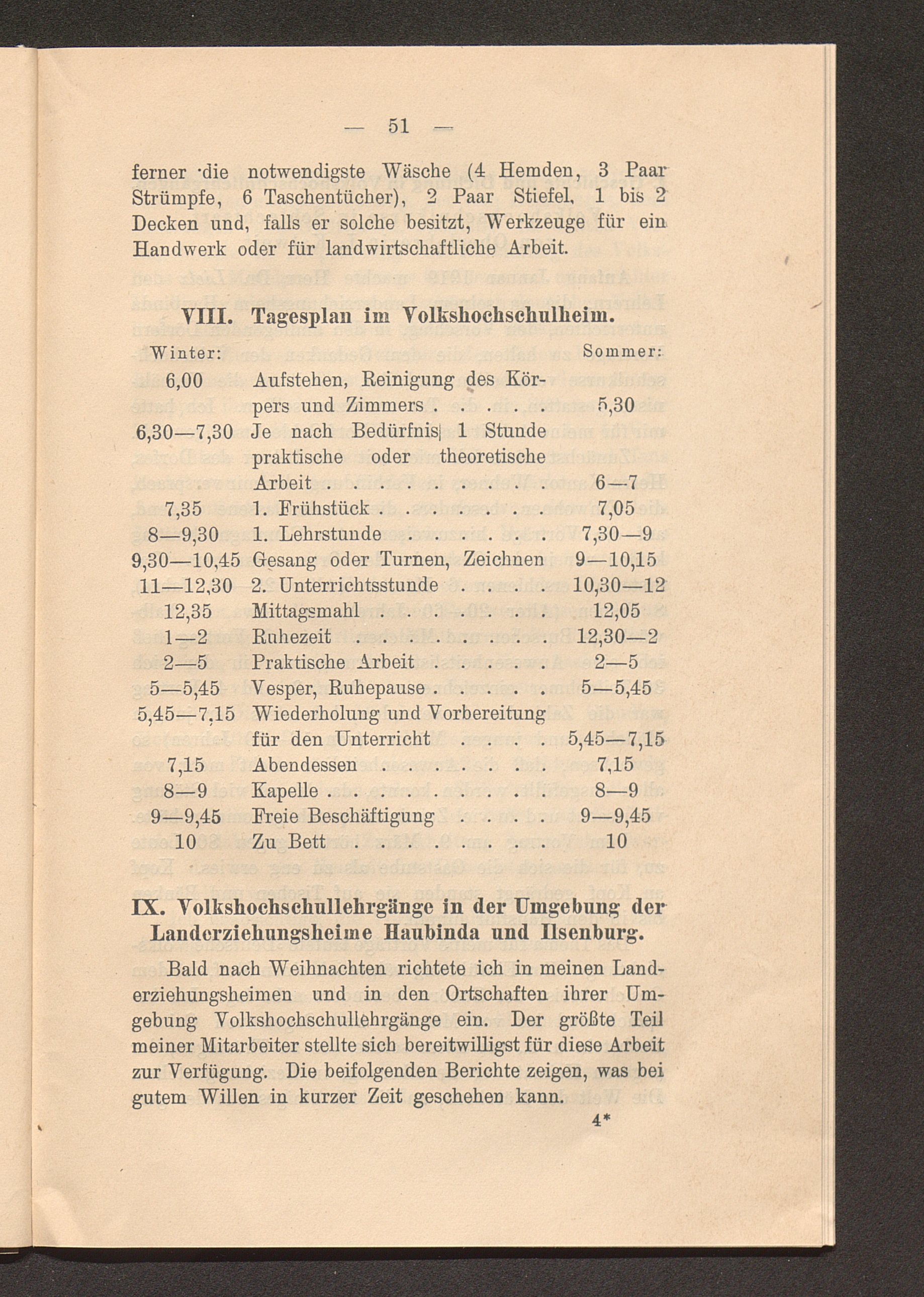 VII. Ordnung- und Arbeitsplan des deutschen Volkshochschulheims