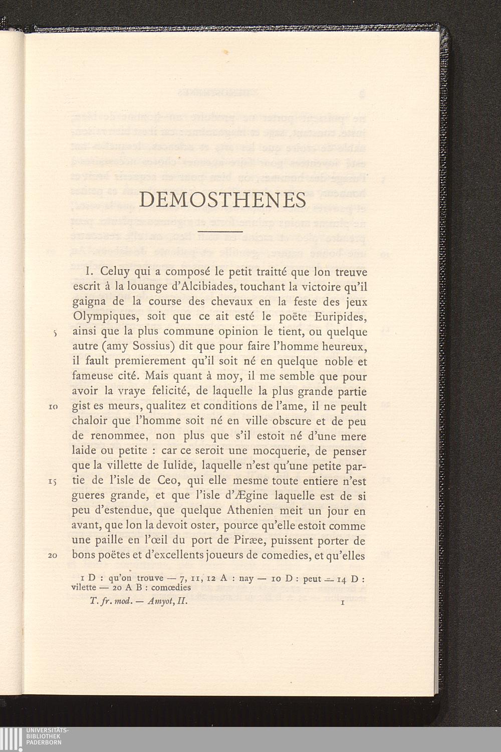 Les vies des hommes illustres, grecs et romains : Demosthenes et Ciceron / Jacques Amyot. Edition critique publiée par Jean Normand