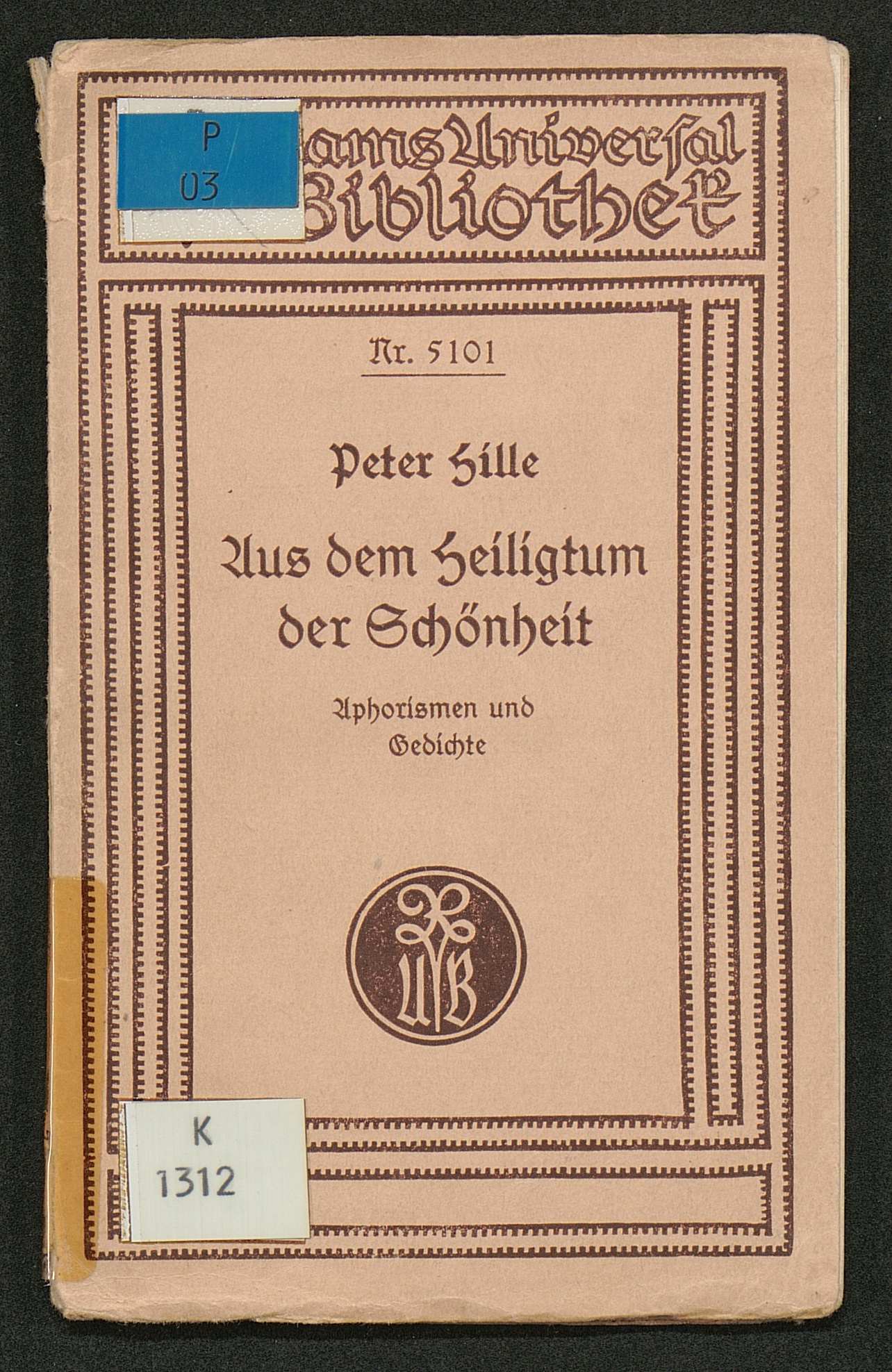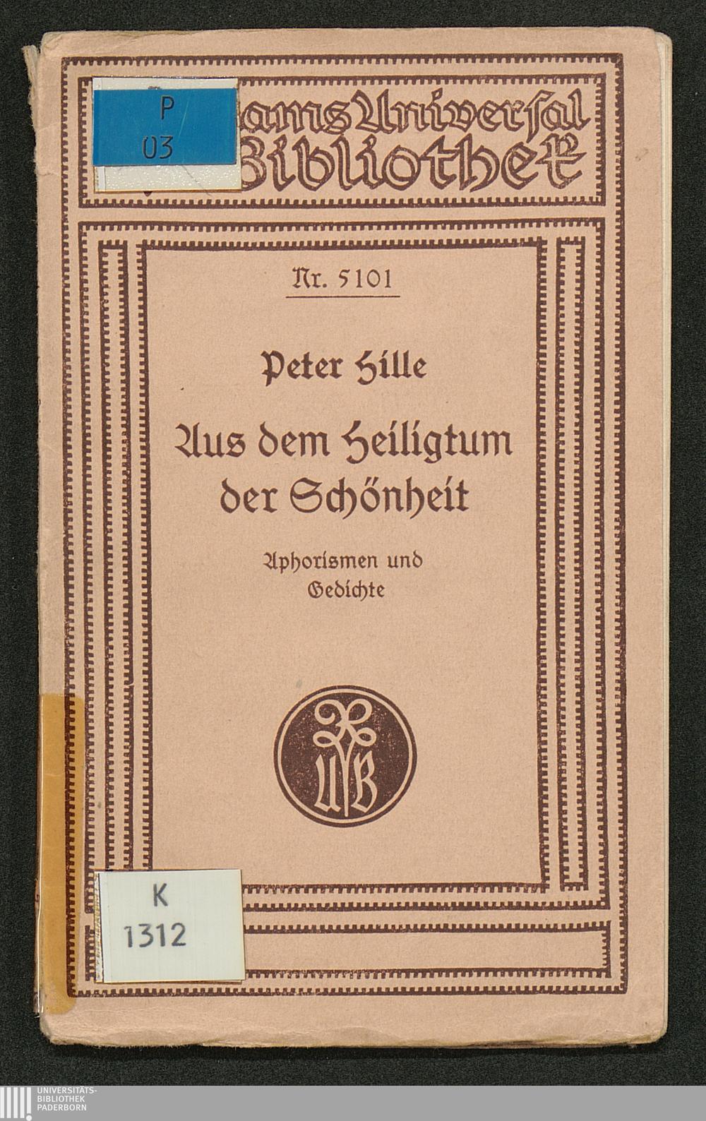 Aus dem Heiligtum der Schönheit : Aphorismen und Gedichte / von Peter Hille. Mit einem einl. Essay hrsg. von Fritz Droop