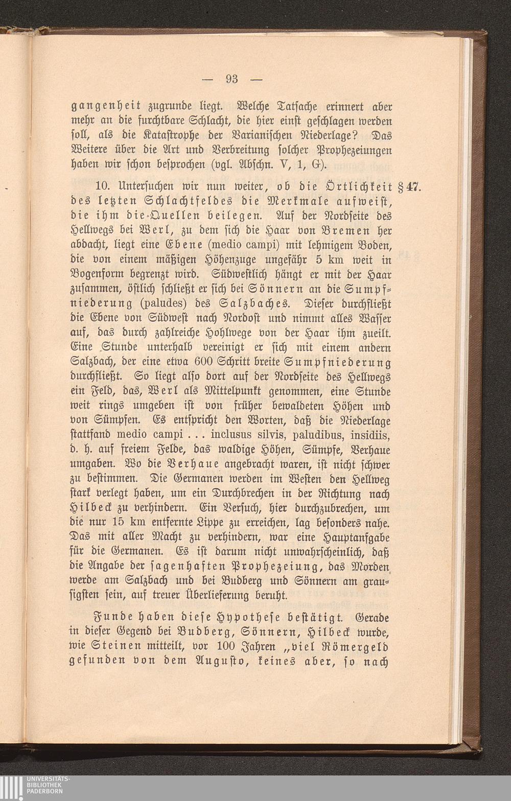10. Die Beschaffenheit des Feldes bei Werl und die Quellen. § 47.