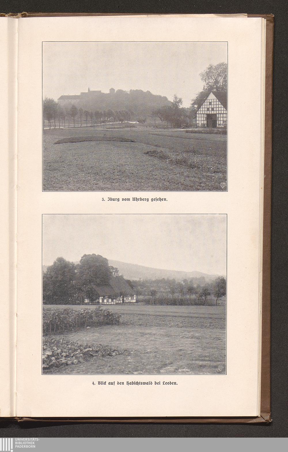 3. Iburg vom Uhrberg gesehen. 4. Blick auf den Habichtswald bei Leeden.