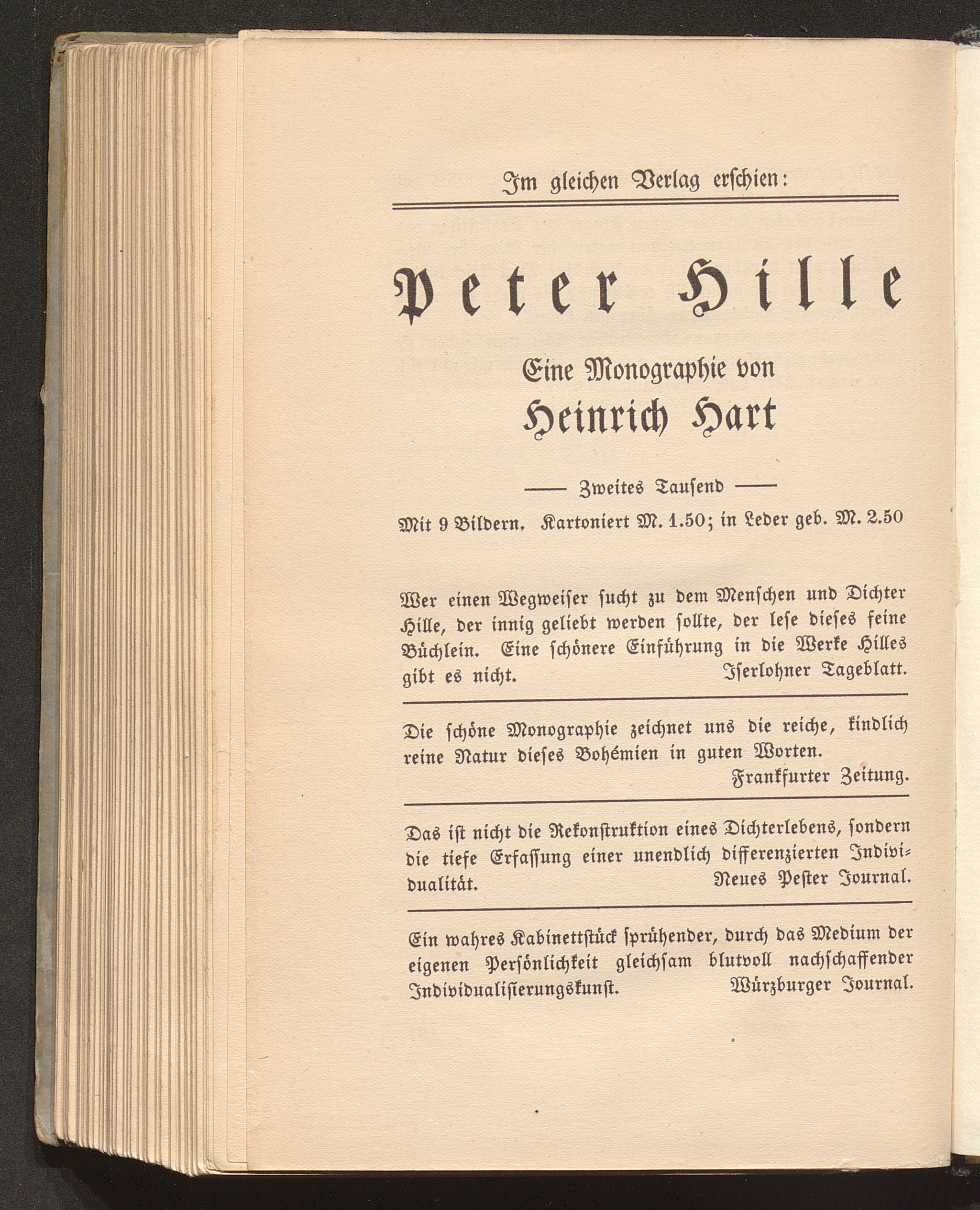 Gesammelte Werke / Peter Hille. Hrsg. von seinen Freunden. Eingel. von Julius Hart