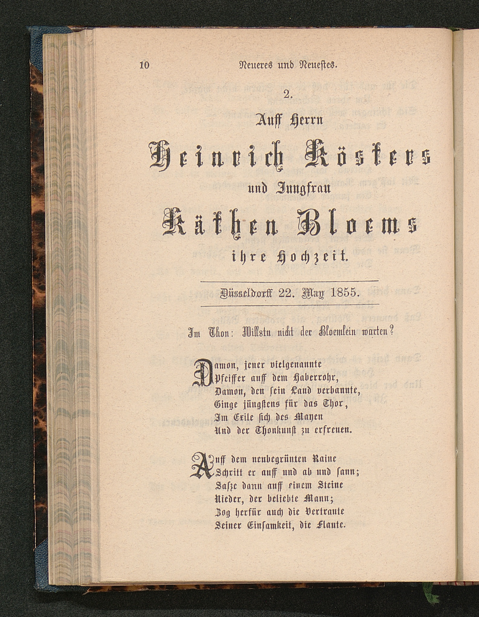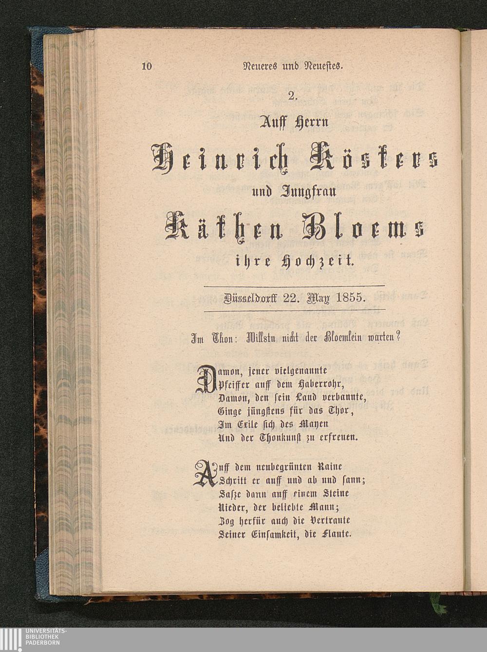 2. Auff Herrn Heinrich Kösters und Jungfrau Käthen Bloems ihre Hochzeit. Düsseldorff,[...]