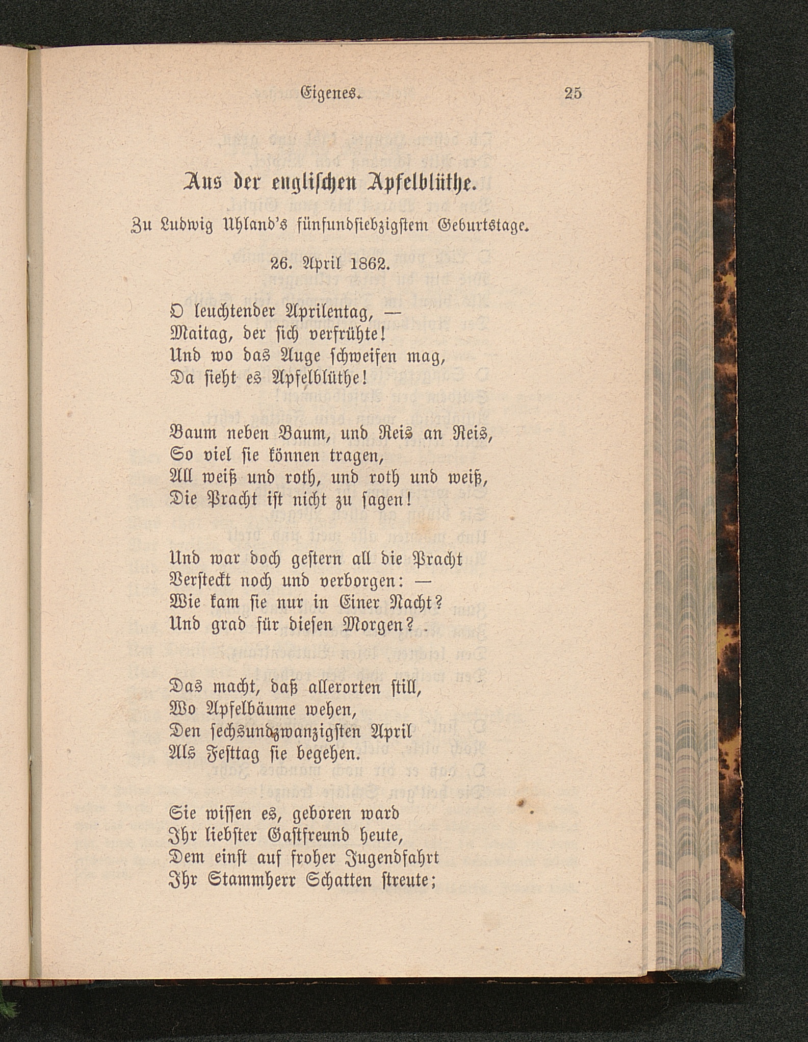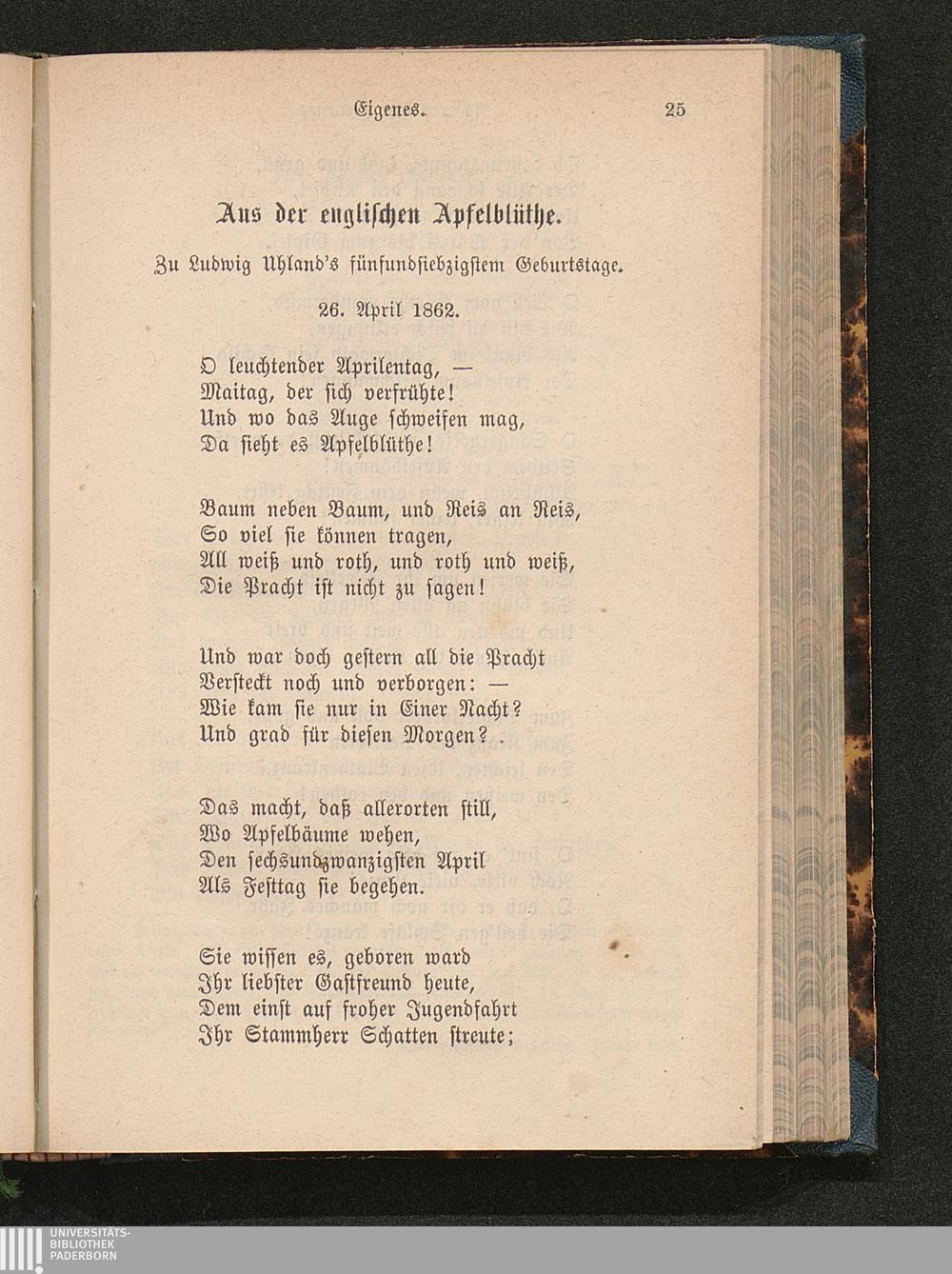 Aus der englischen Apfelblüthe. Zu Ludwig Uhland's fünfundsiebzigstem Geburtstag[...]