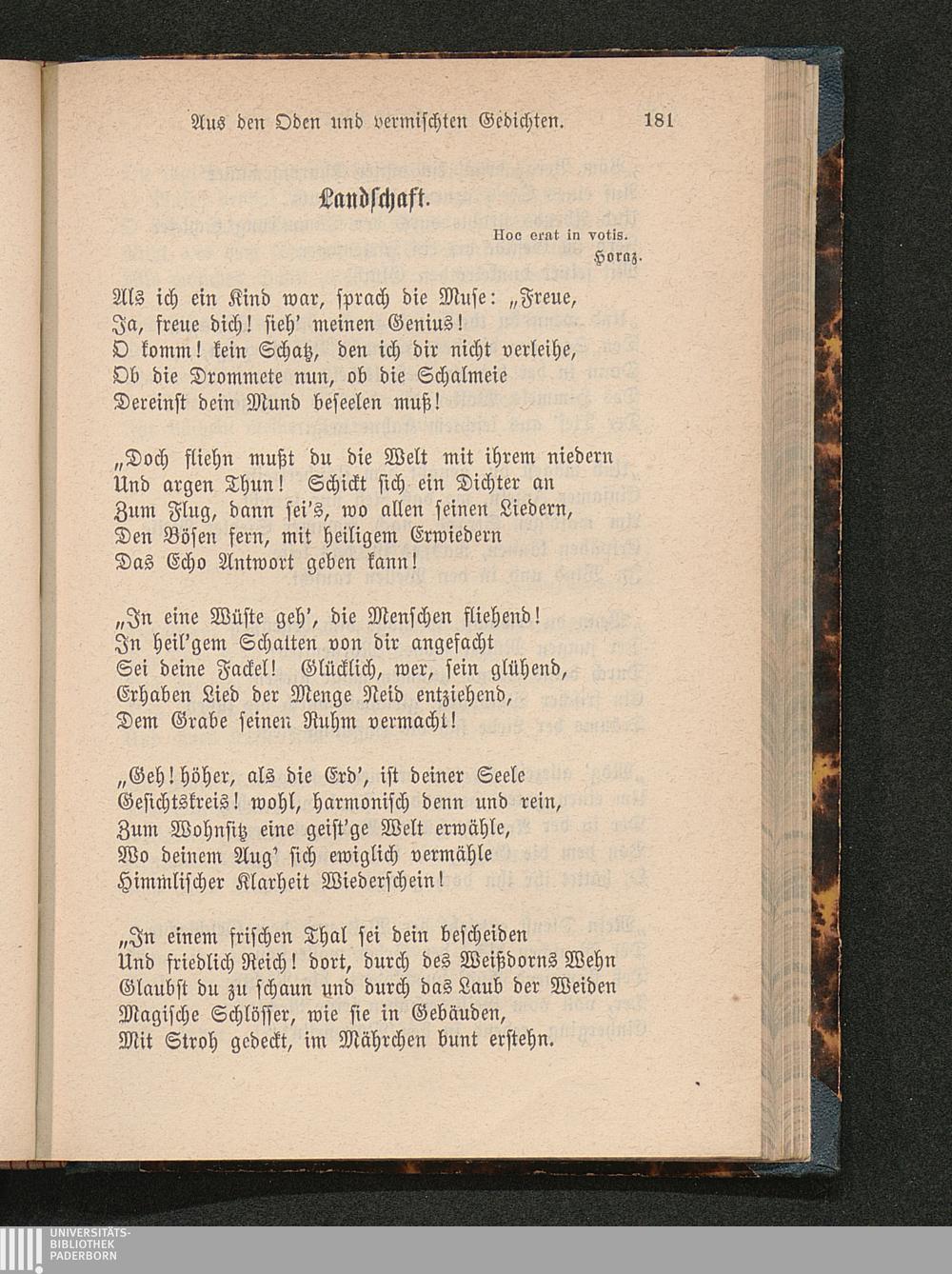 Aus den Oden und vermischten Gedichten.