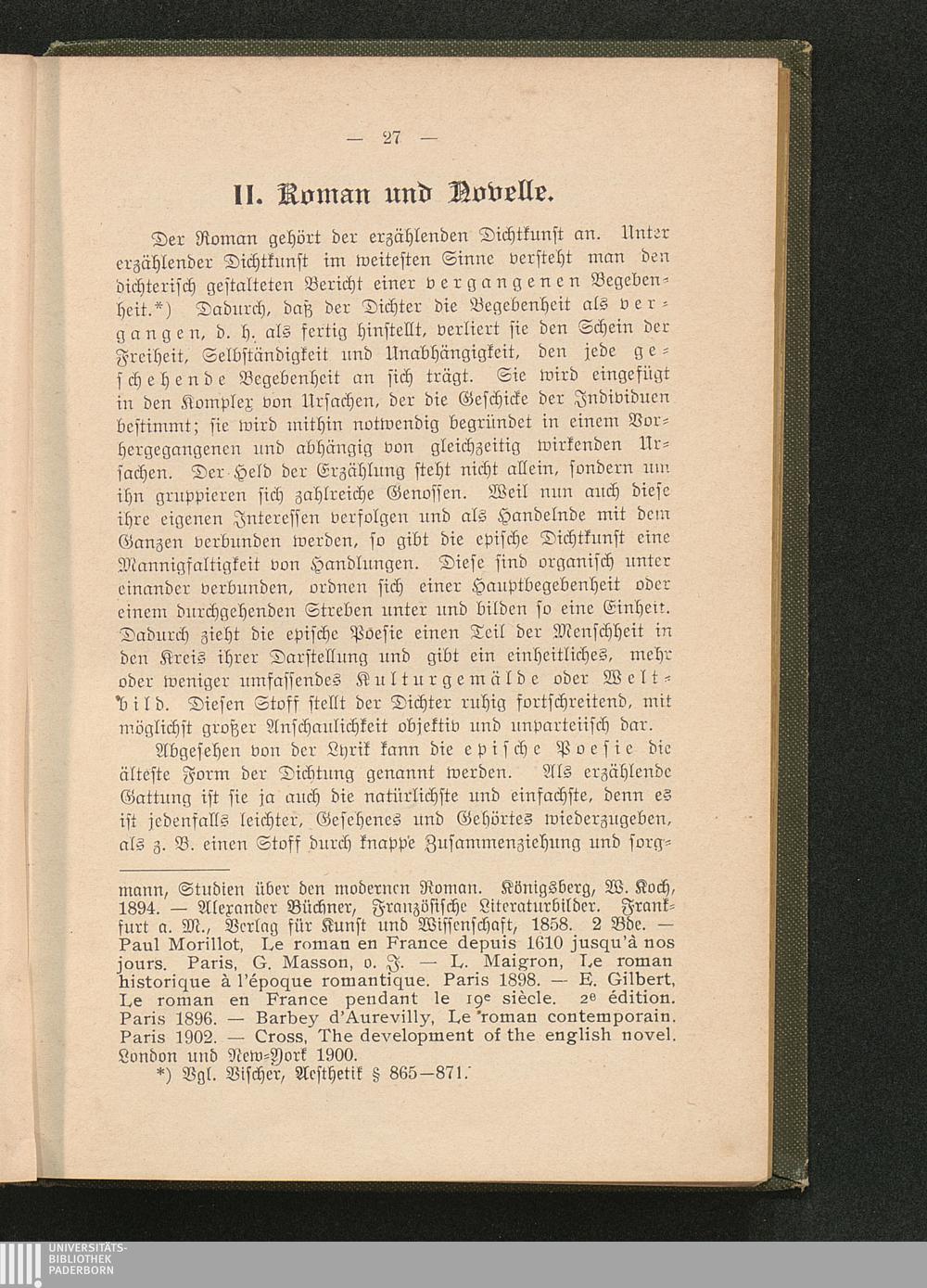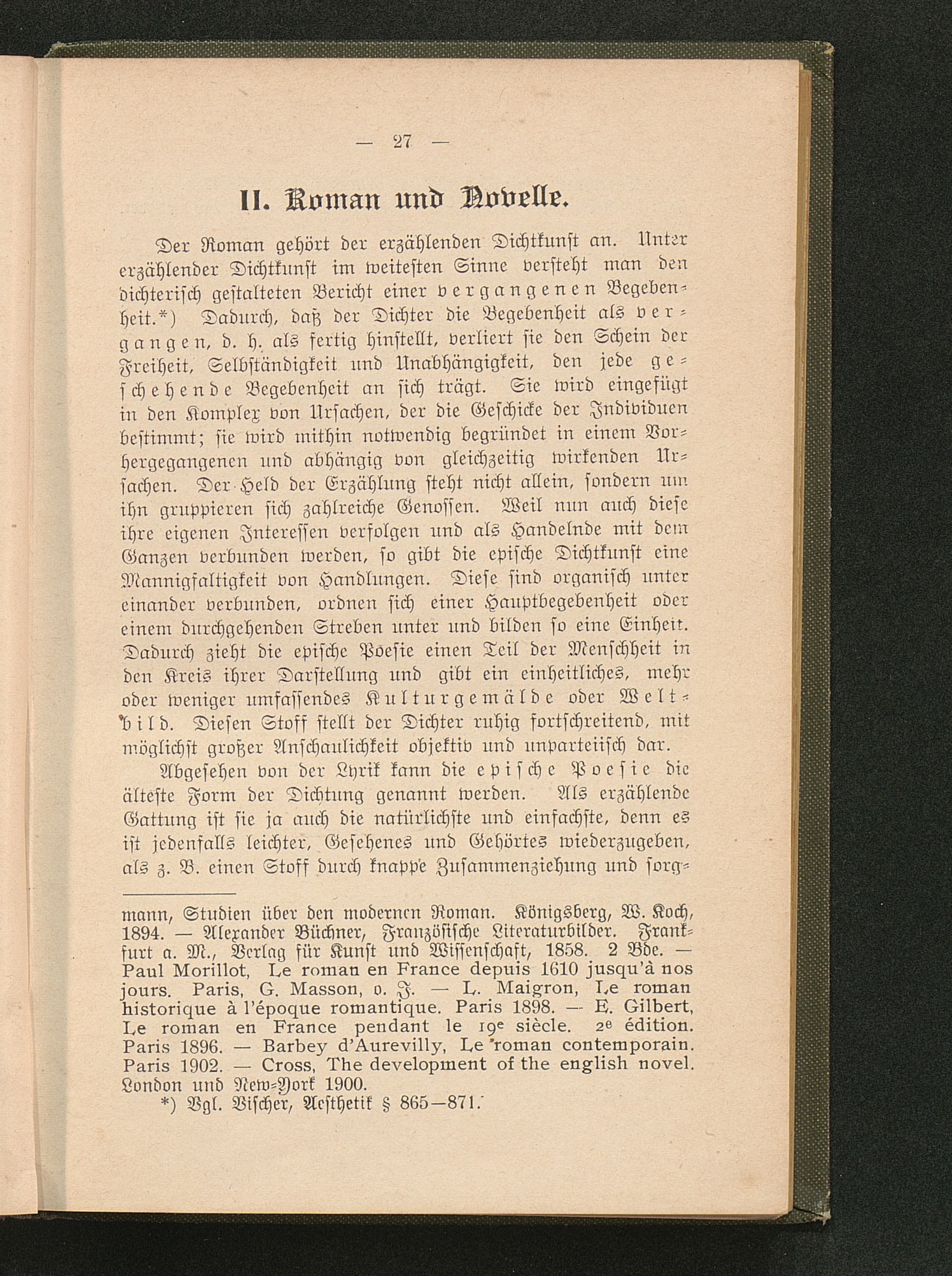 Erster Abschnitt. Geschichte und Wesen des Romans.