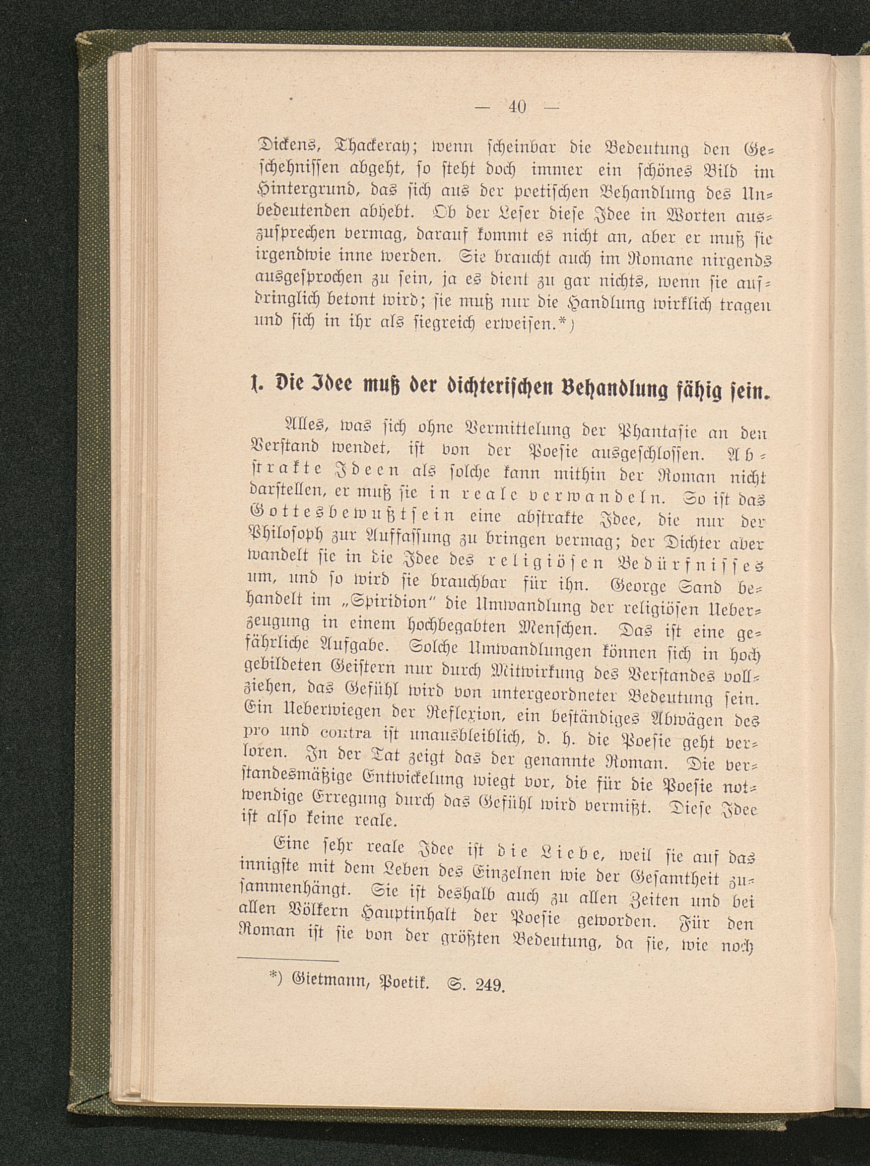 1. Die Idee muß der dichterischen Behandlung fähig sein