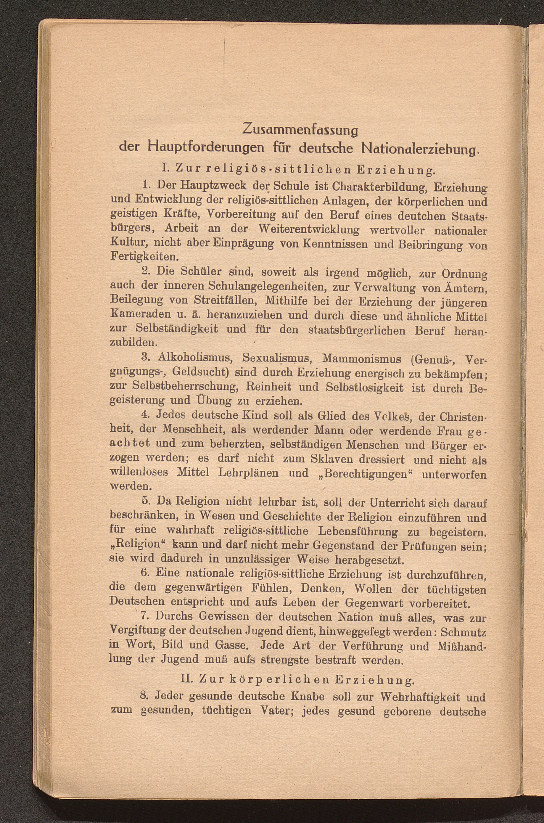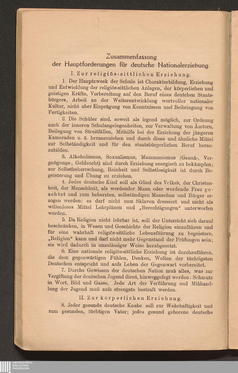 IV. Zwanzig Forderungen für die deutsche Nationalerziehung