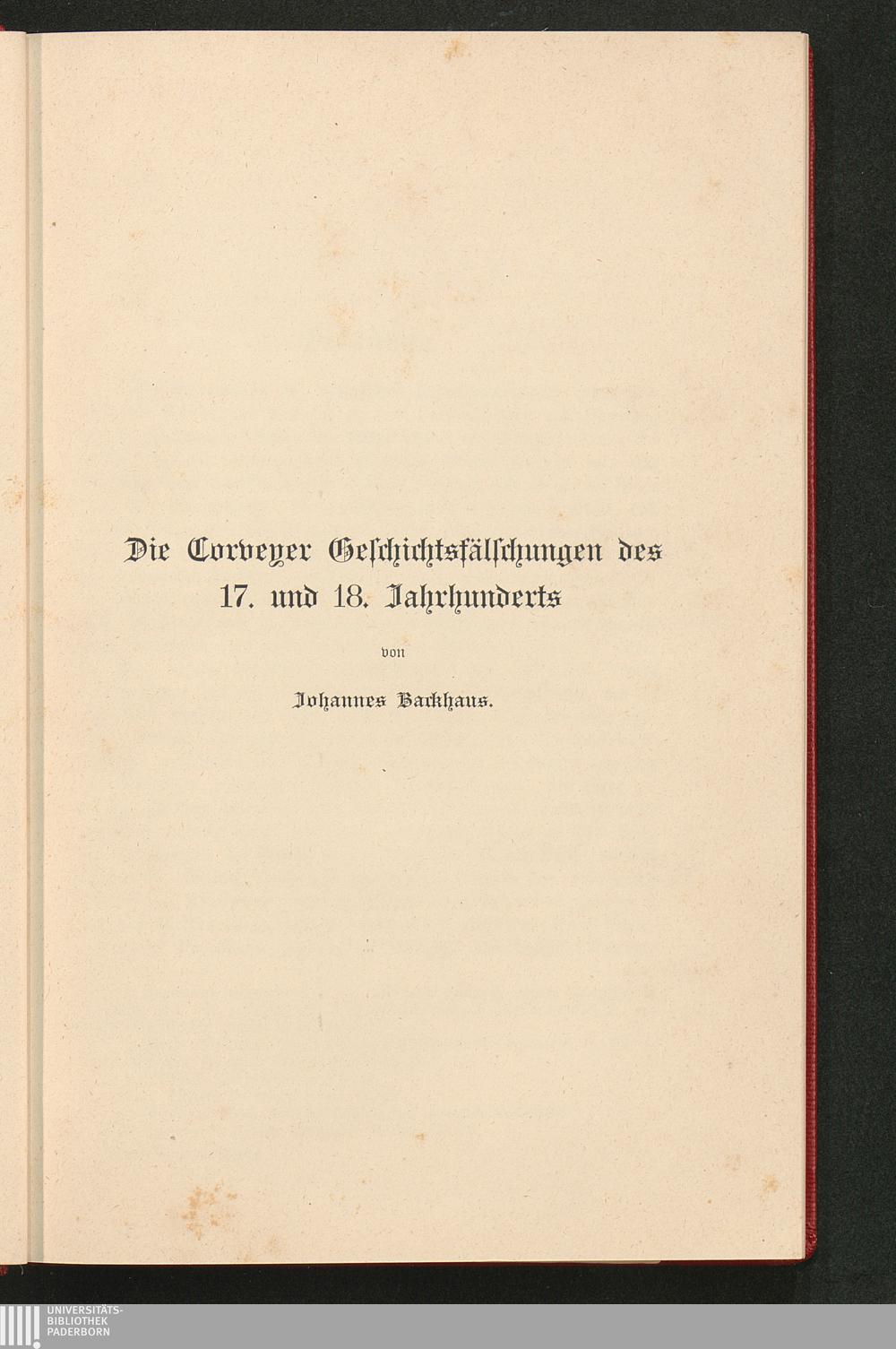 Die Corveyer Geschichtsfälschungen des 17. und 18. Jahrunderts von Backhaus