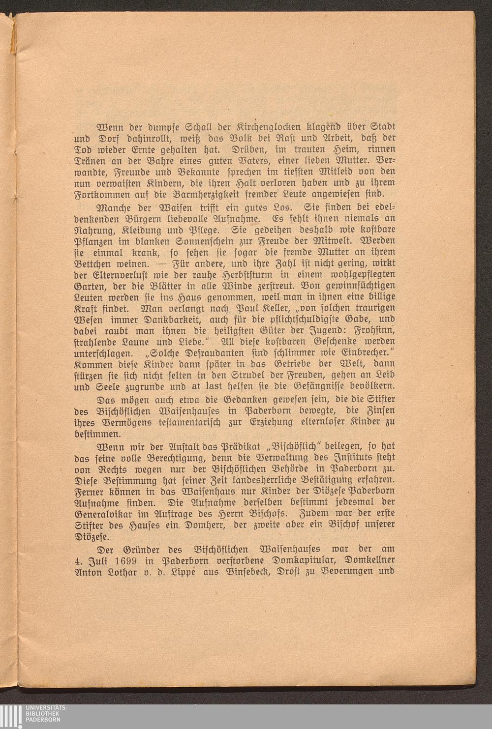 Geschichte des bischöflichen Waisenhauses in Paderborn : (1770 - 1920) ; zur hunderfünfzigjährigen Gedächtnisfeier der Anstalt / von Johann P. Puls