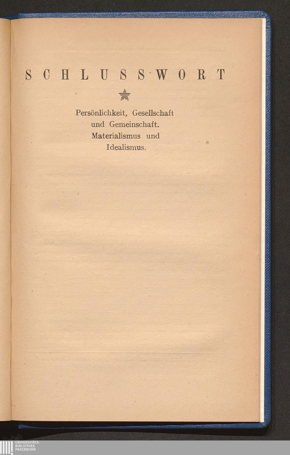Schlusswort: Persönlichkeit, Gesellschaft und Gemeinschaft. Materialismus und Id[...]