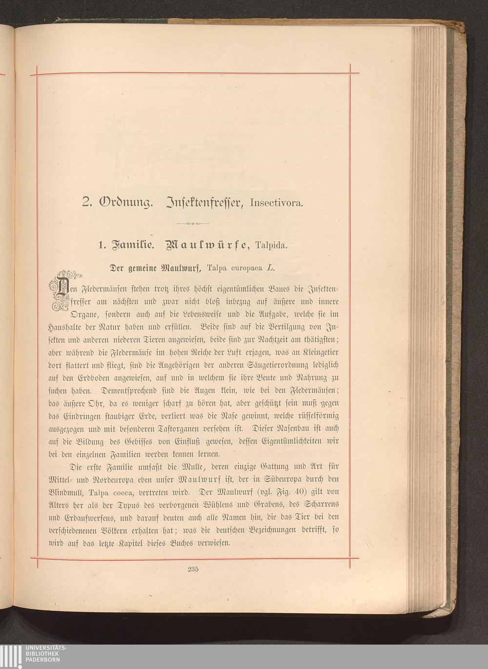 1. Familie. Maulwürfe, Talpida.