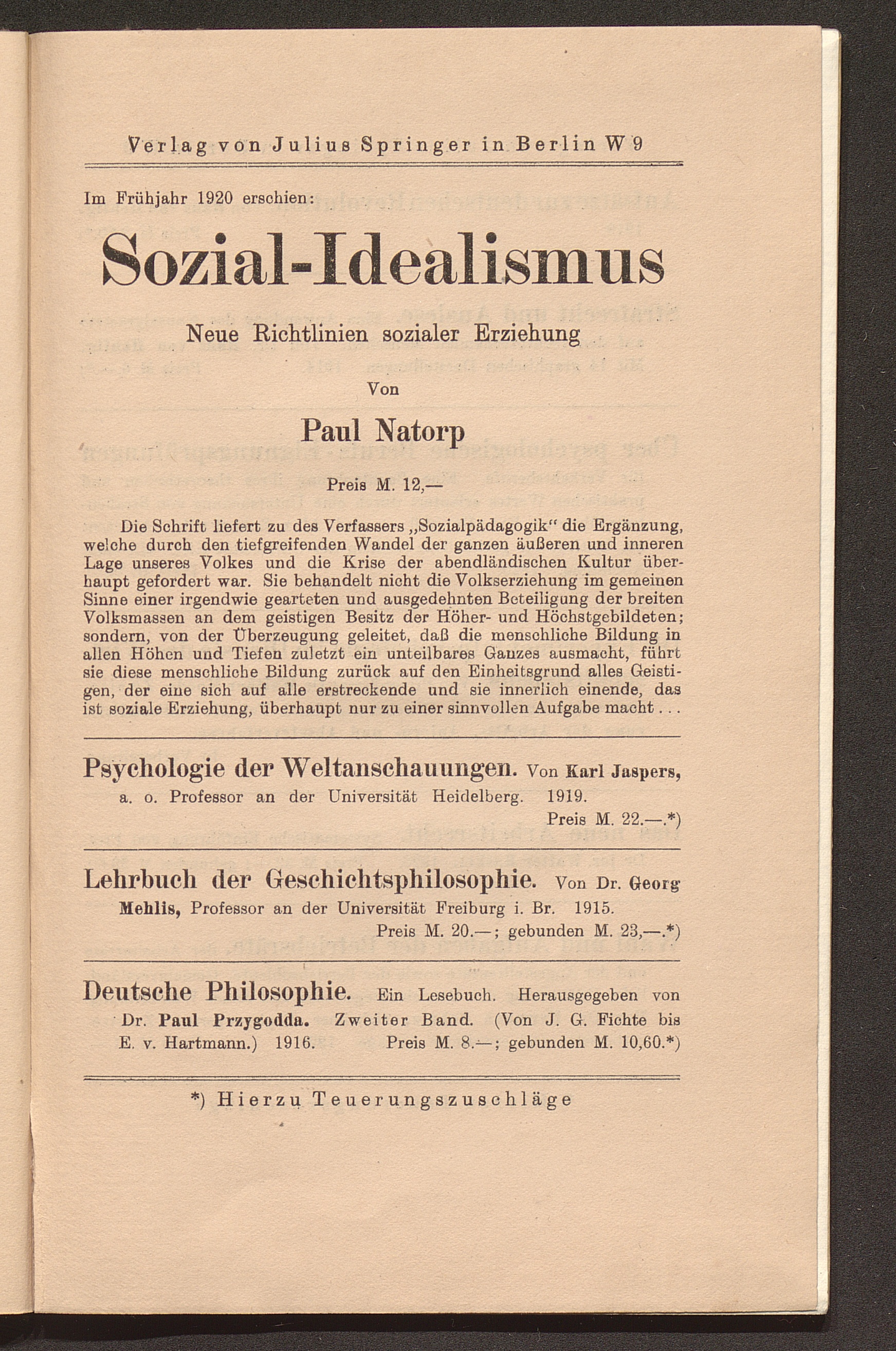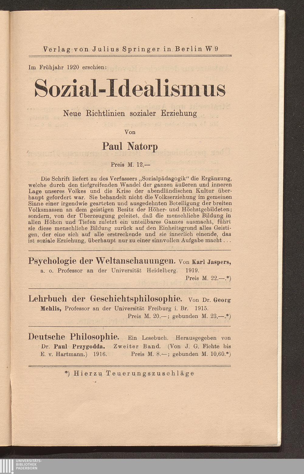 Genossenschaftliche Erziehung als Grundlage zum Neubau des Volkstums und des Menschentums / Thesen nebst Einleitung von Paul Natorp