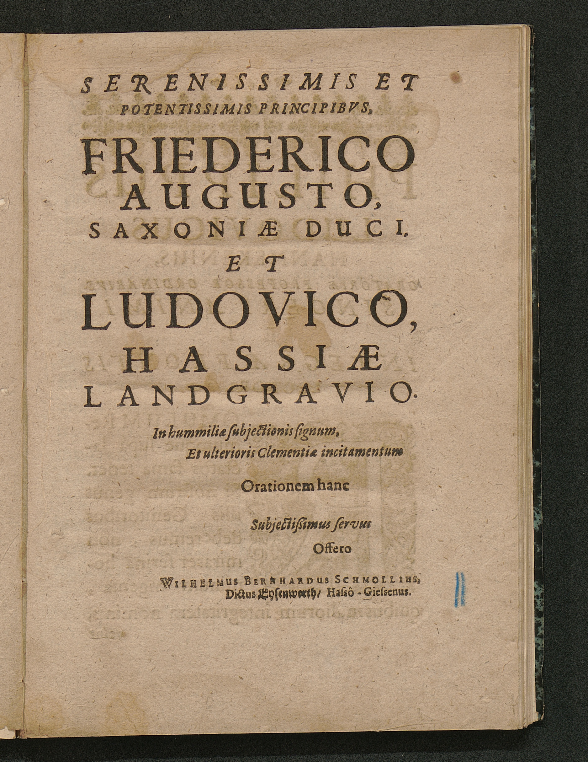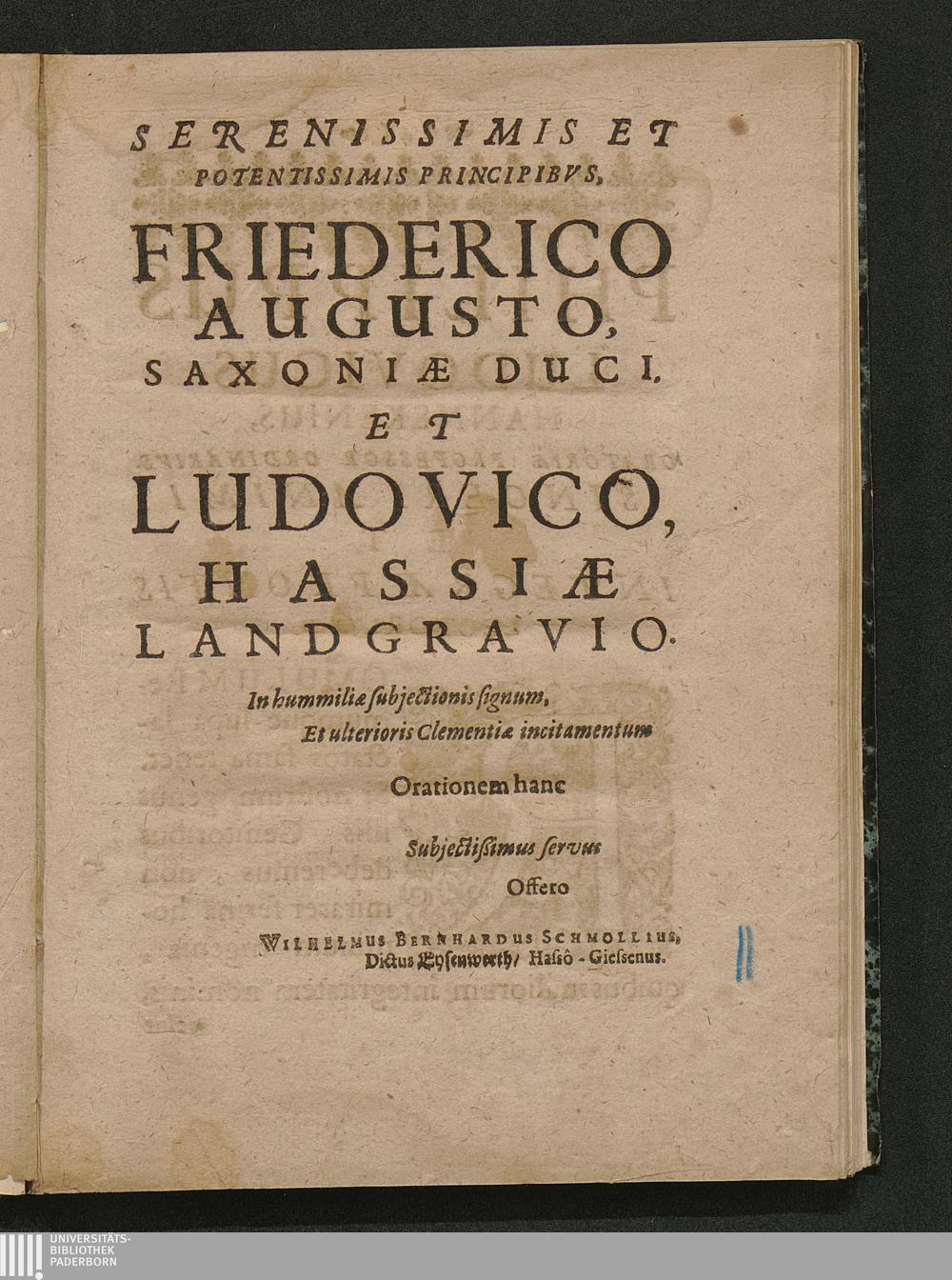 Infamia Calumniæ / In Publico Avditorio, Ex Oratorum Cathedra Monstrata, A Wilhelmo Bernhardo Schmollio, Dicto Eysenwerth/ Giessâ-Hasso. Gissæ, Die [...] Martii, A. C. 1664.
