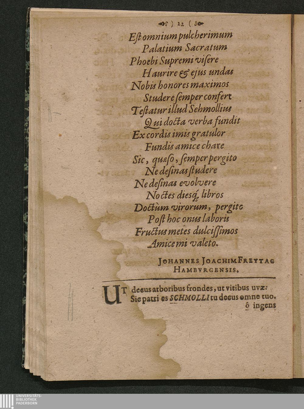 Infamia Calumniæ / In Publico Avditorio, Ex Oratorum Cathedra Monstrata, A Wilhelmo Bernhardo Schmollio, Dicto Eysenwerth/ Giessâ-Hasso. Gissæ, Die [...] Martii, A. C. 1664.
