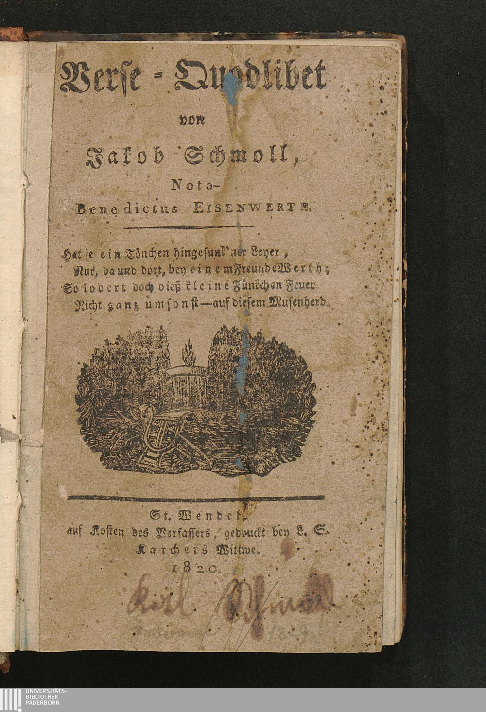 Verse-Quodlibet / von Jakob Schmoll, Nota-Benedictus Eisenwerth