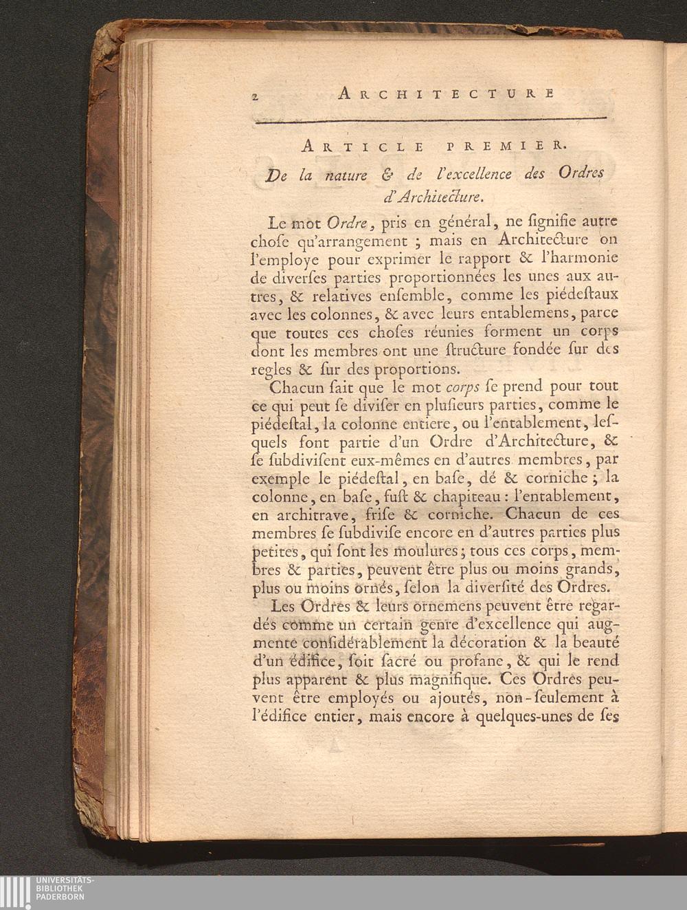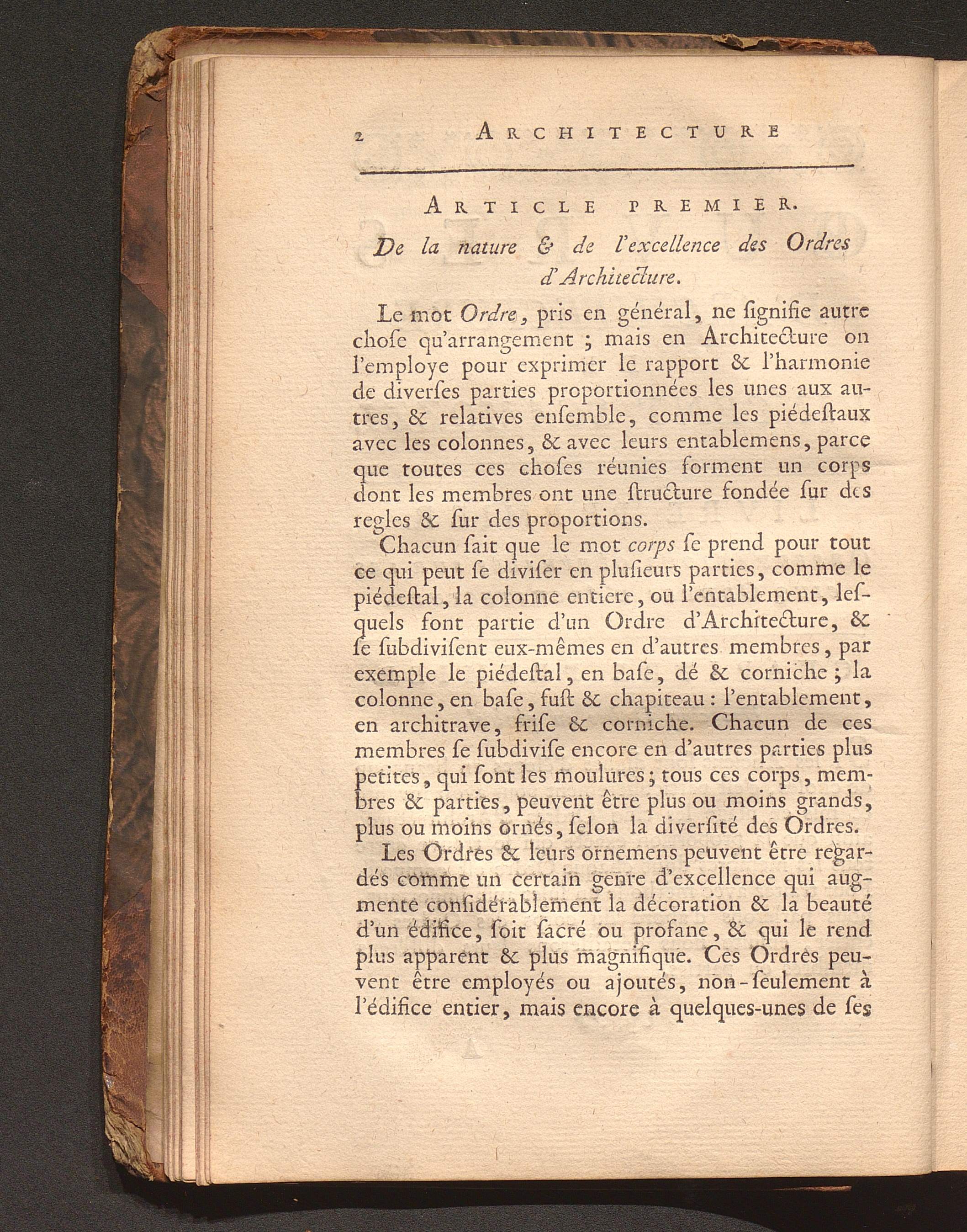 Art. I. De la nature & de l'excellence des Ordres d'Architecture.