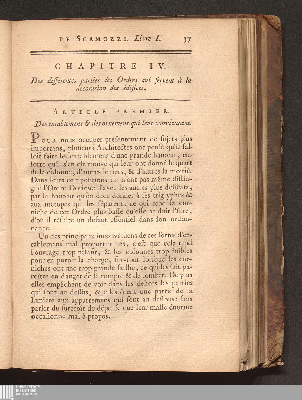 Chap. IV. Des différentes parties des Ordres qui servent à la décoration des édi[...]