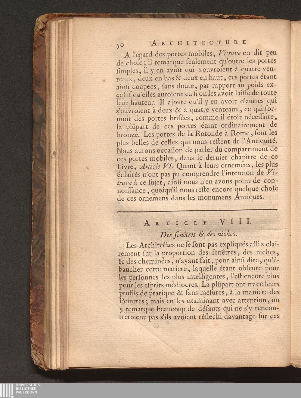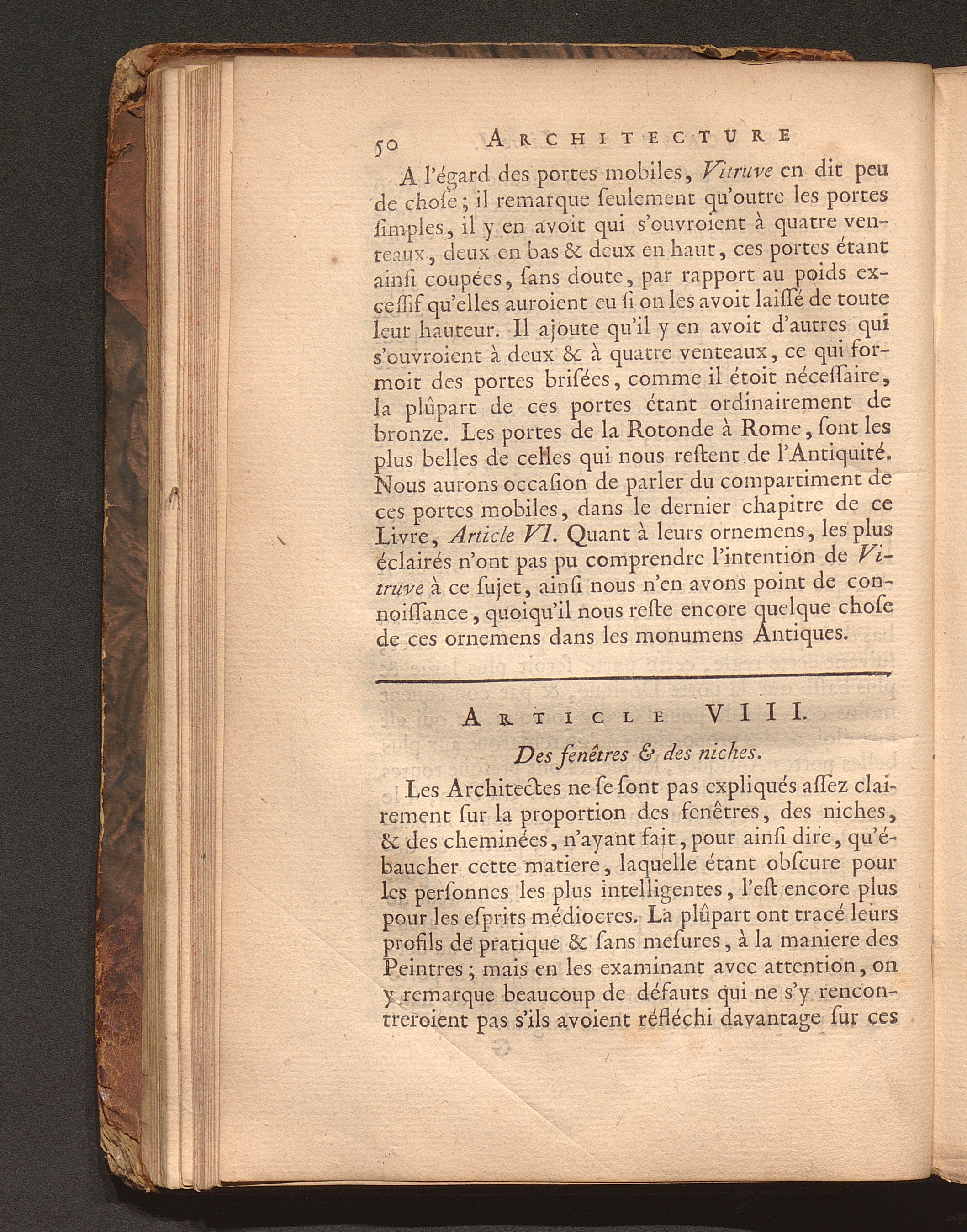 Art. VIII. Des fenêtres & des niches.