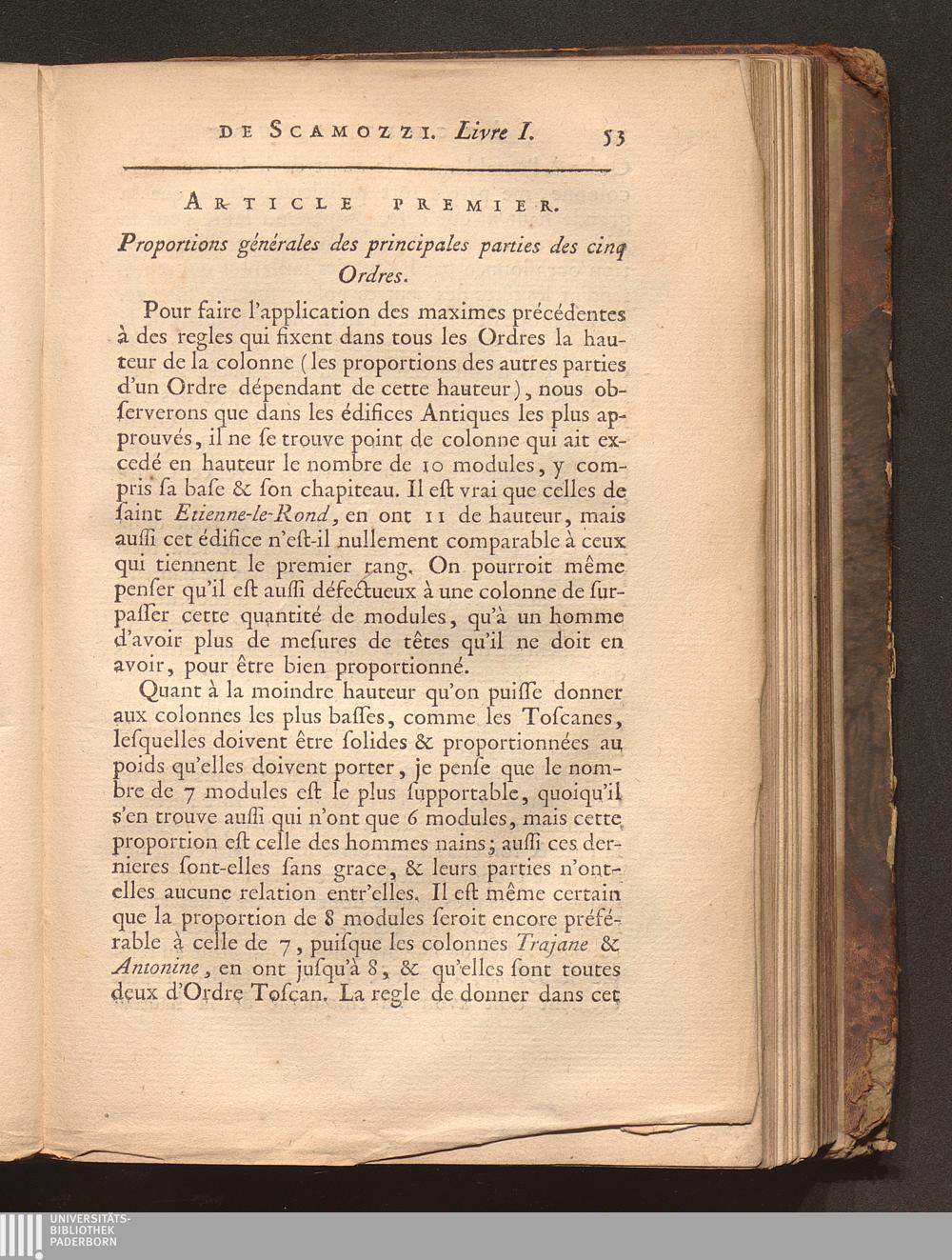 Livre Premier. Observations générales sur les cinq Ordres d'Architecture.