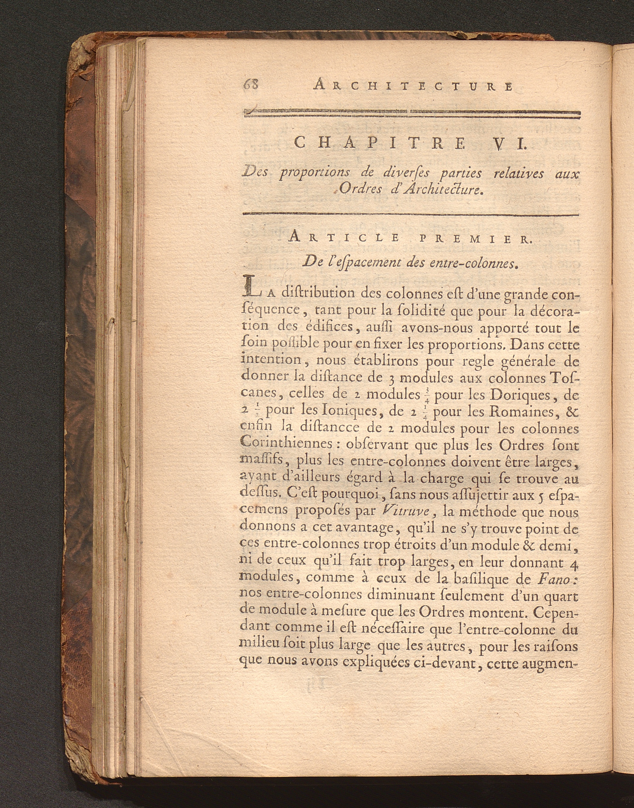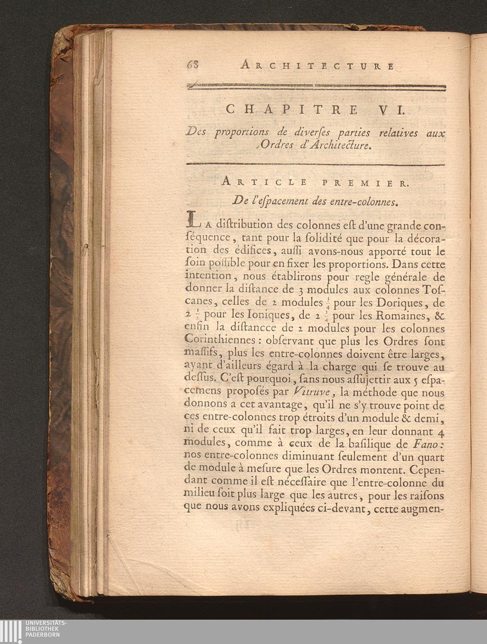 Chap. VI. Des proportions de diverses parties relatives aux Ordres d'Architectur[...]
