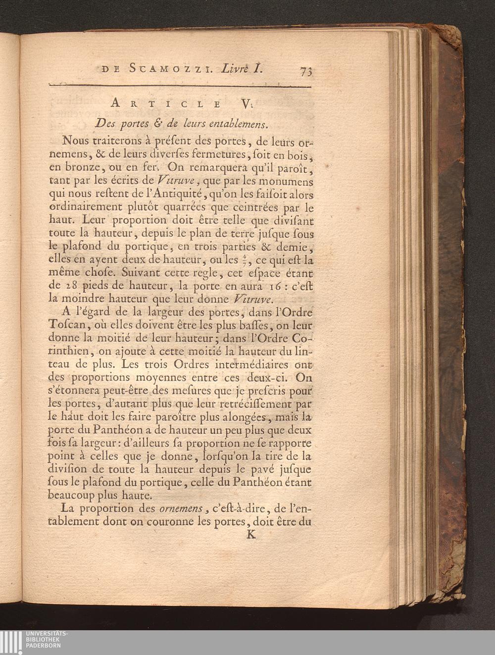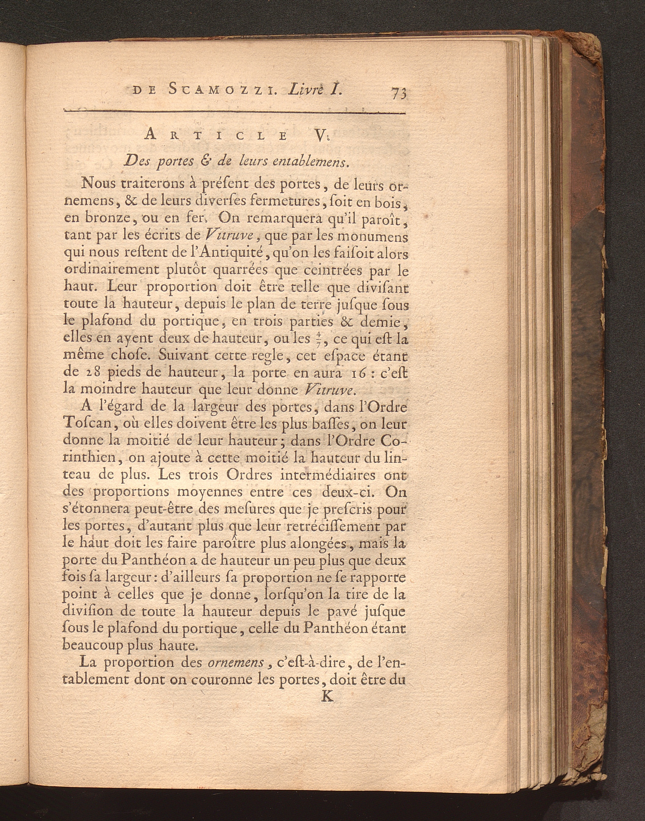 Art. V. Des portes & de leurs entablemens.