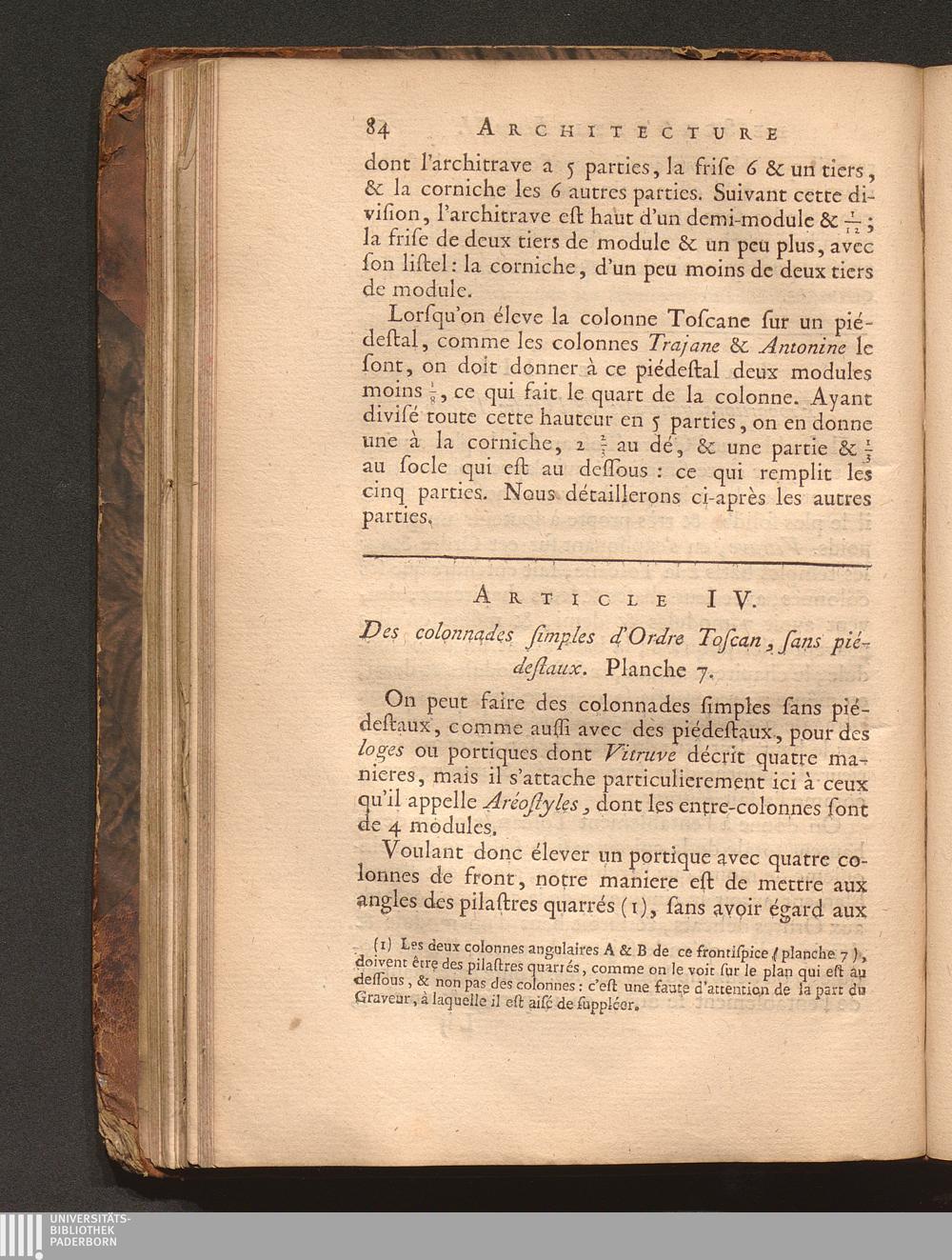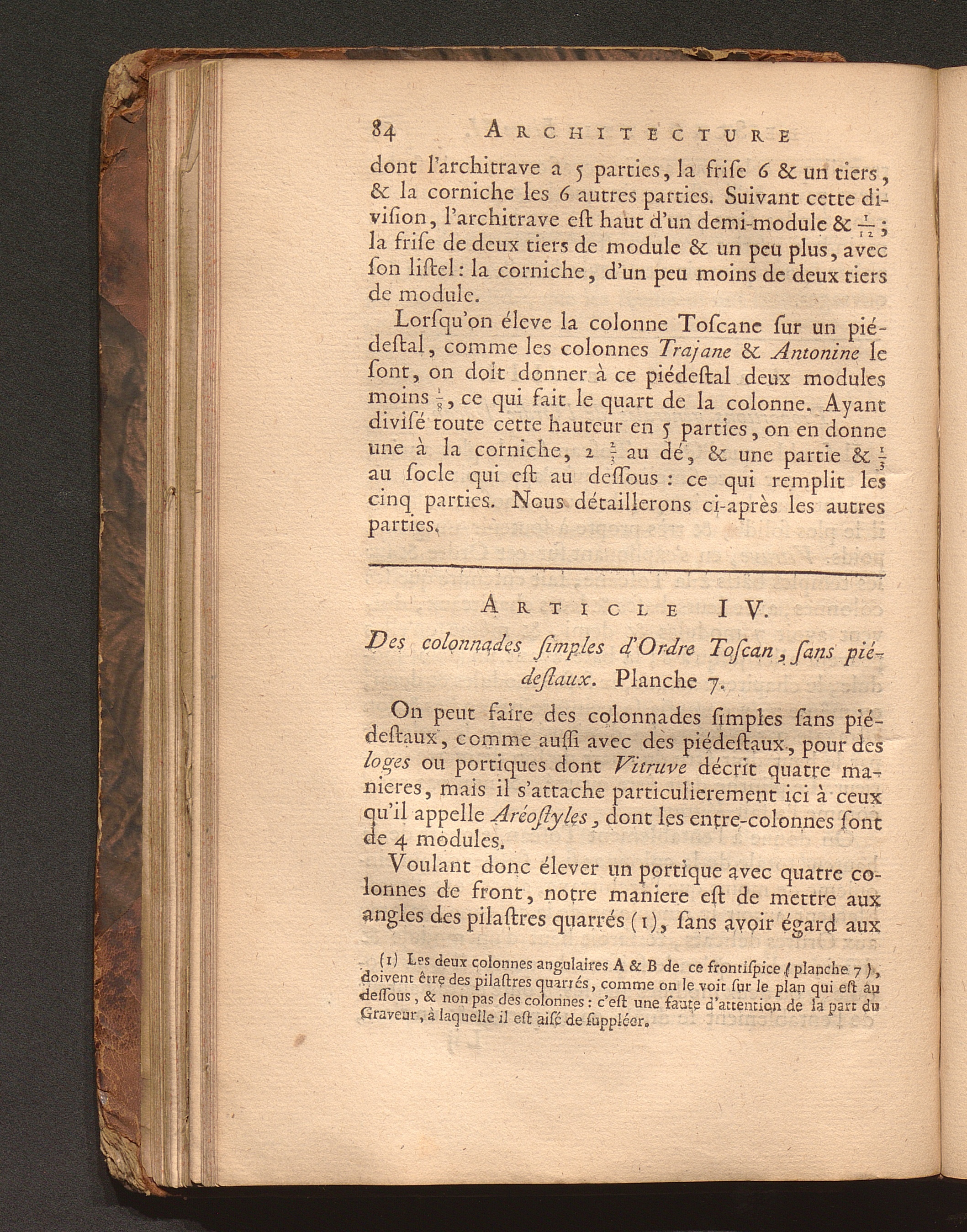 Art. IV. Des colonnades simples d'Ordre Toscan, sans piédestaux.