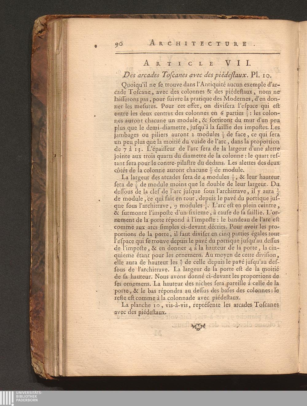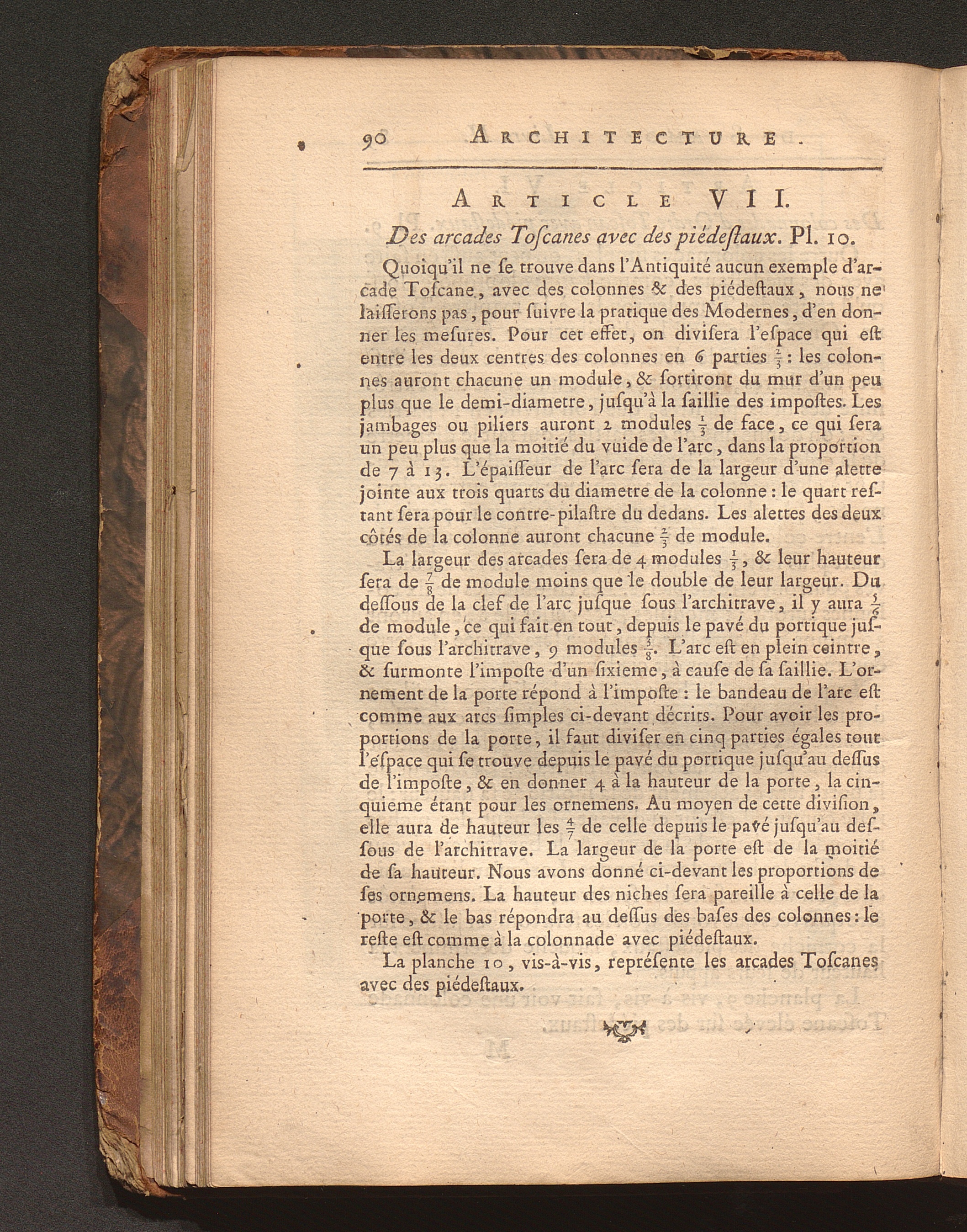 Art. VII. Des arcades Toscanes avec des piédestaux.