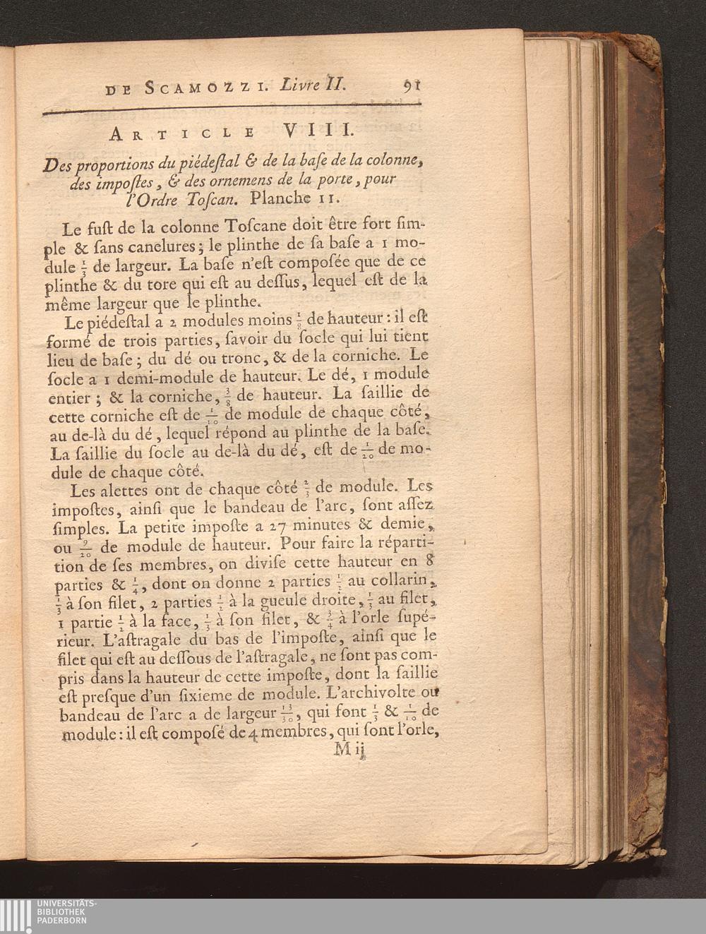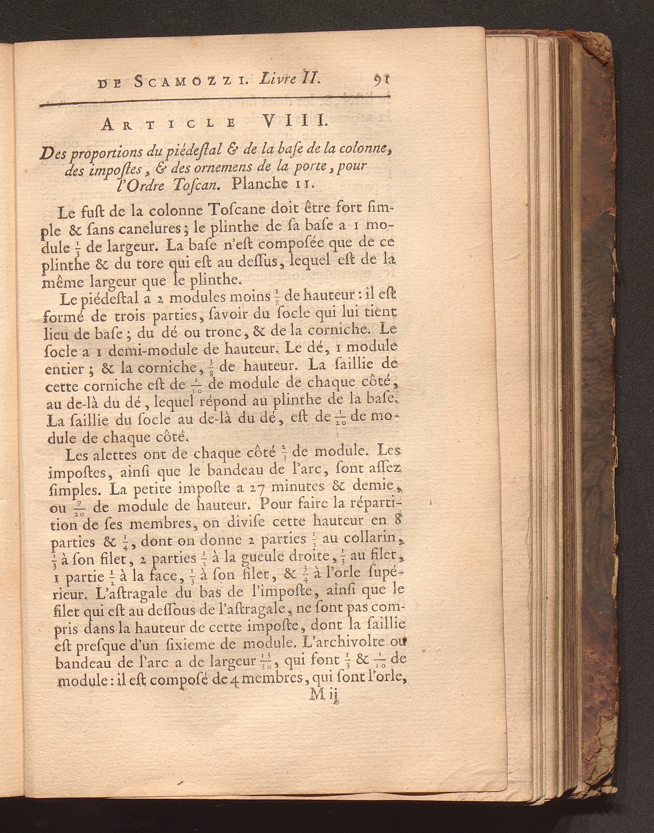 Art. VIII. Des proportions du piédestal & de la base de la colonne, des impostes,[...]