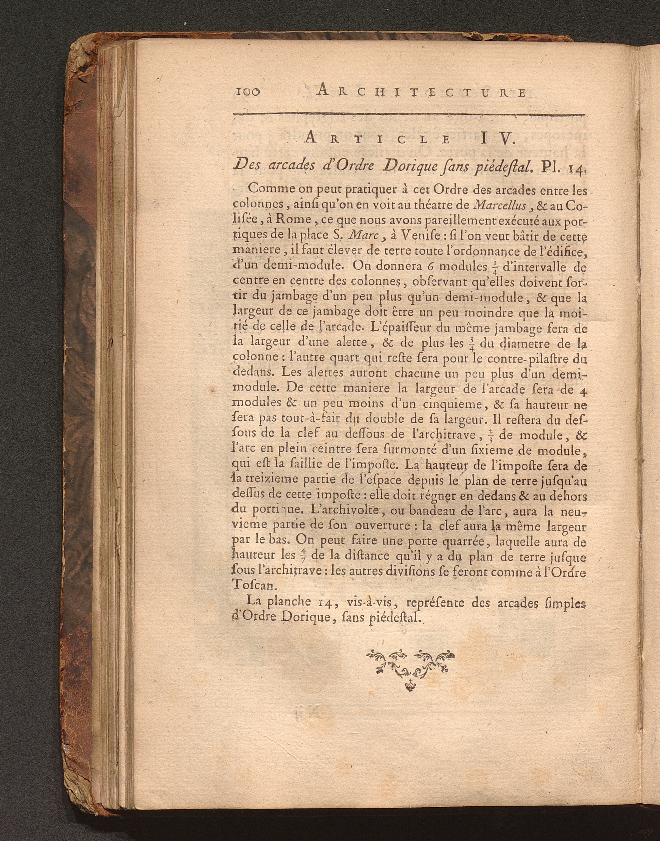 Art. IV. Des arcades d'Ordre Dorique sans piédestal.