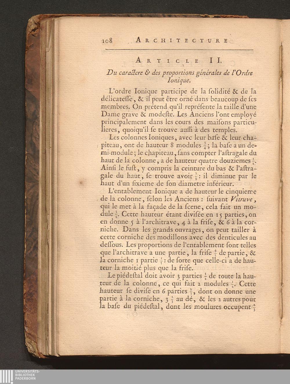 Art. II. Du caractere & des proportions générales de l'Ordre Ionique.
