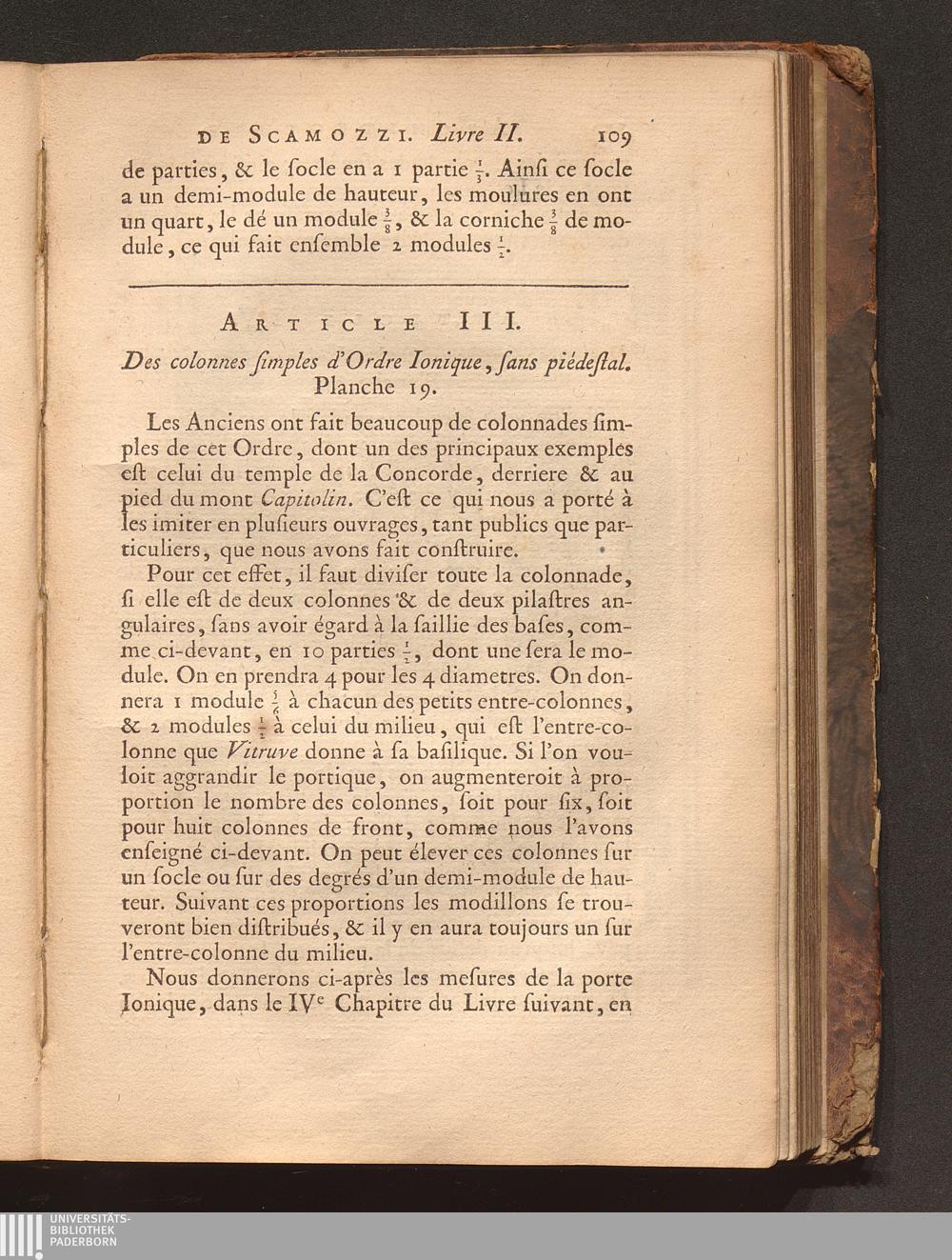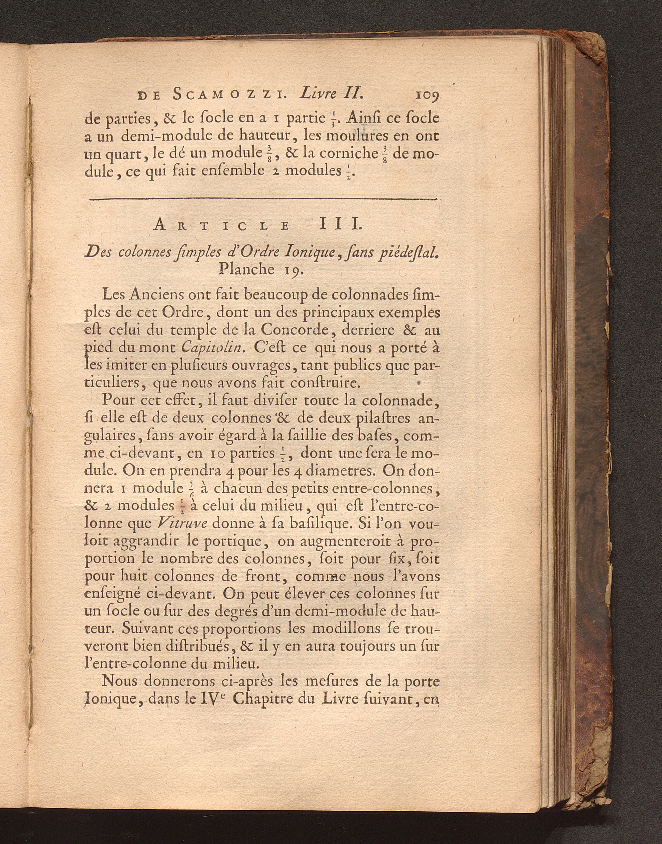 Art. III. Des colonnades simples d'Ordre Ionique, sans piédestal.