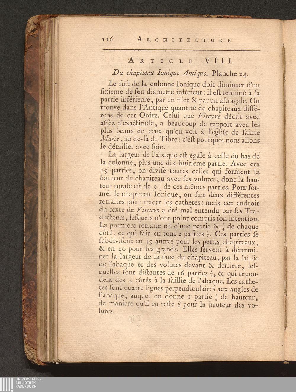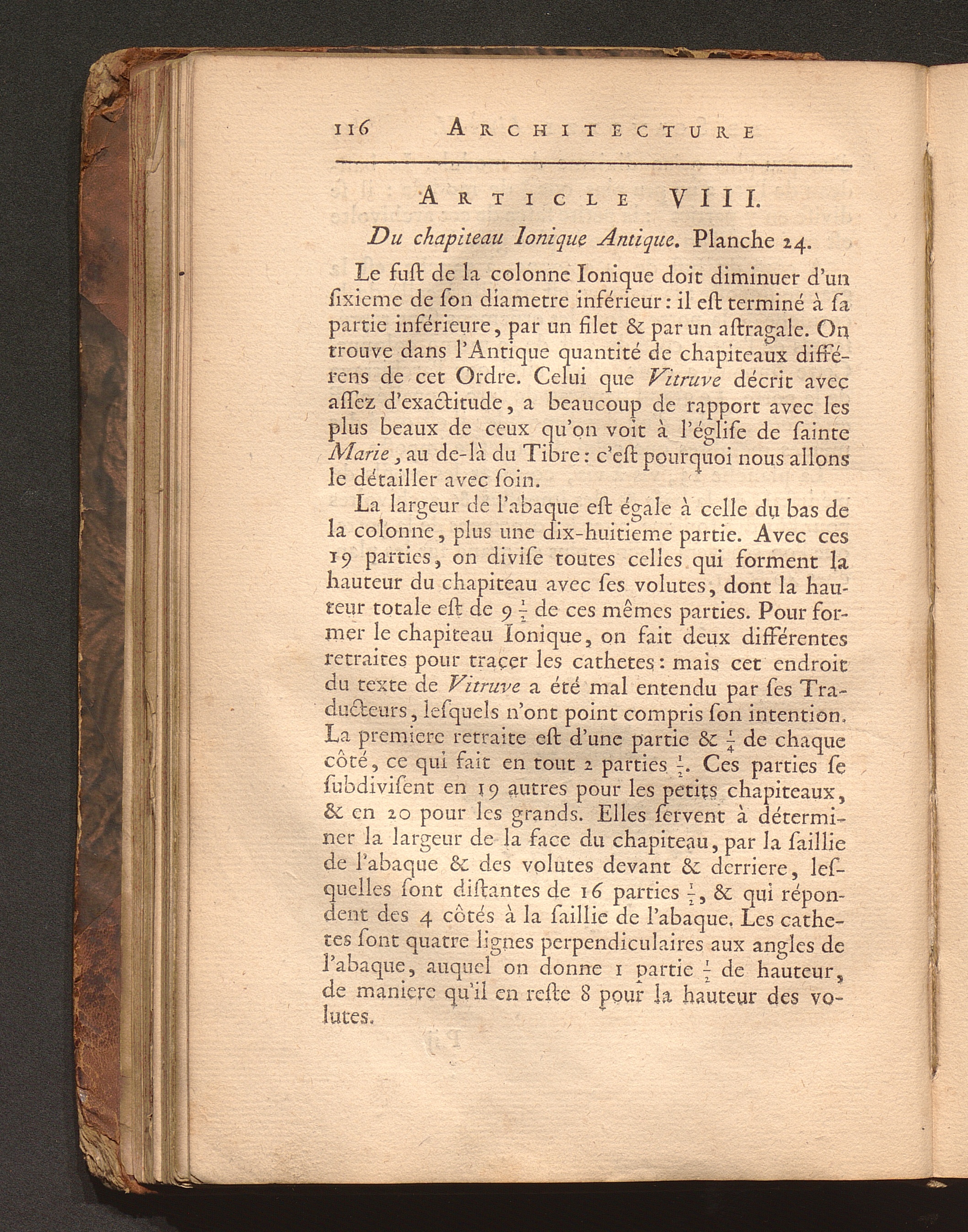 Art. VIII. Du chapiteau Ionique Antique.