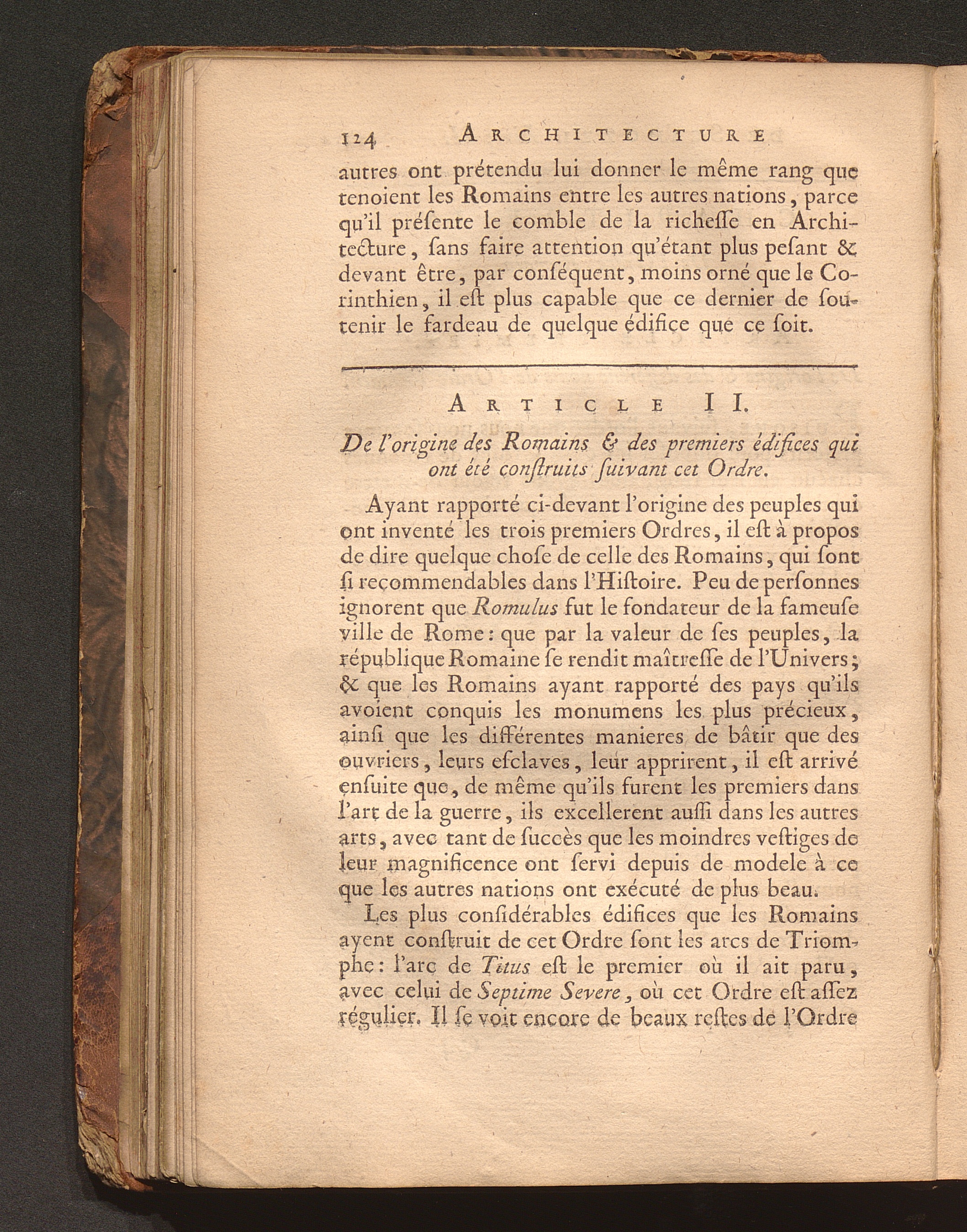 Art. II. De l'origine des Romains & des premiers édifices qui ont été construits[...]