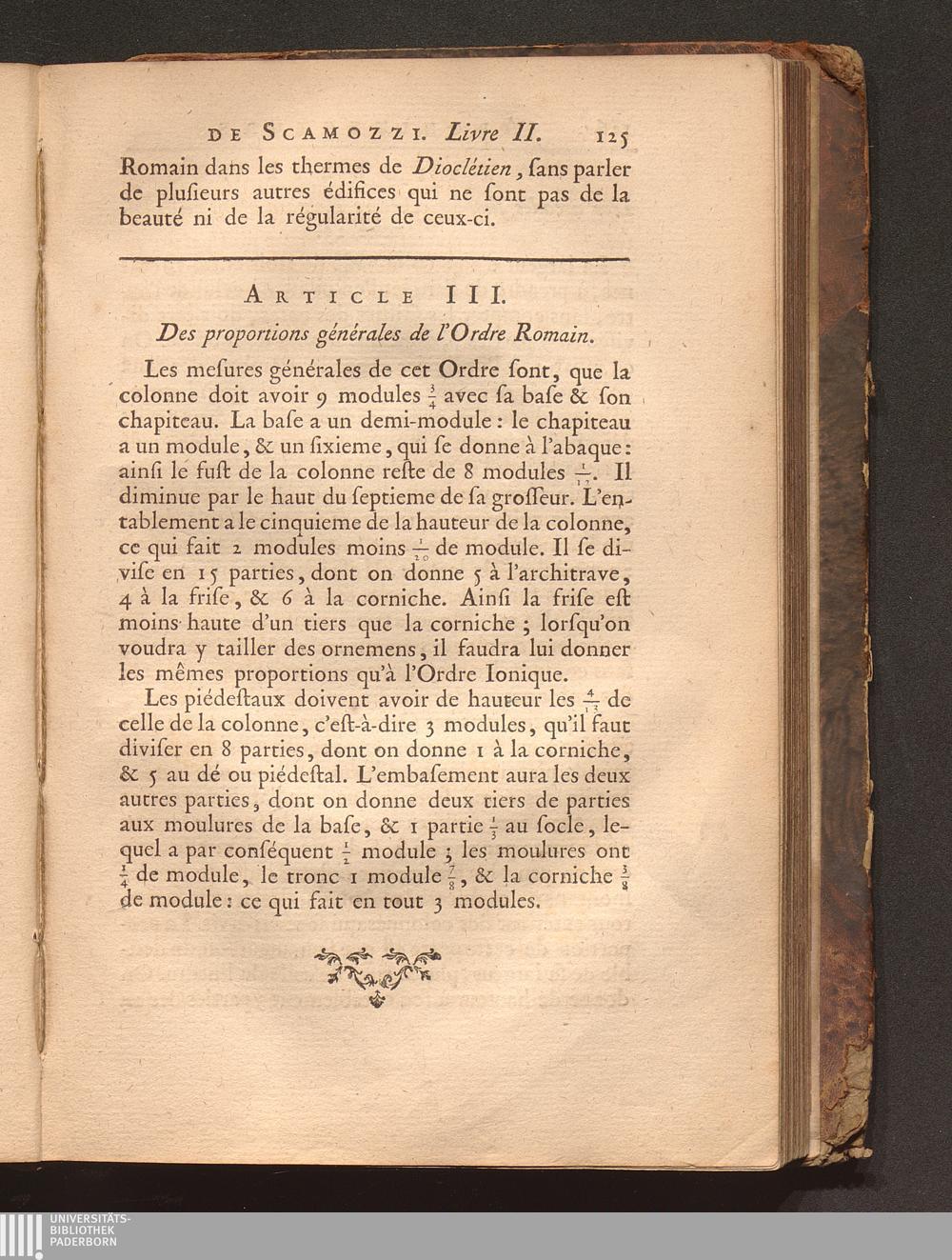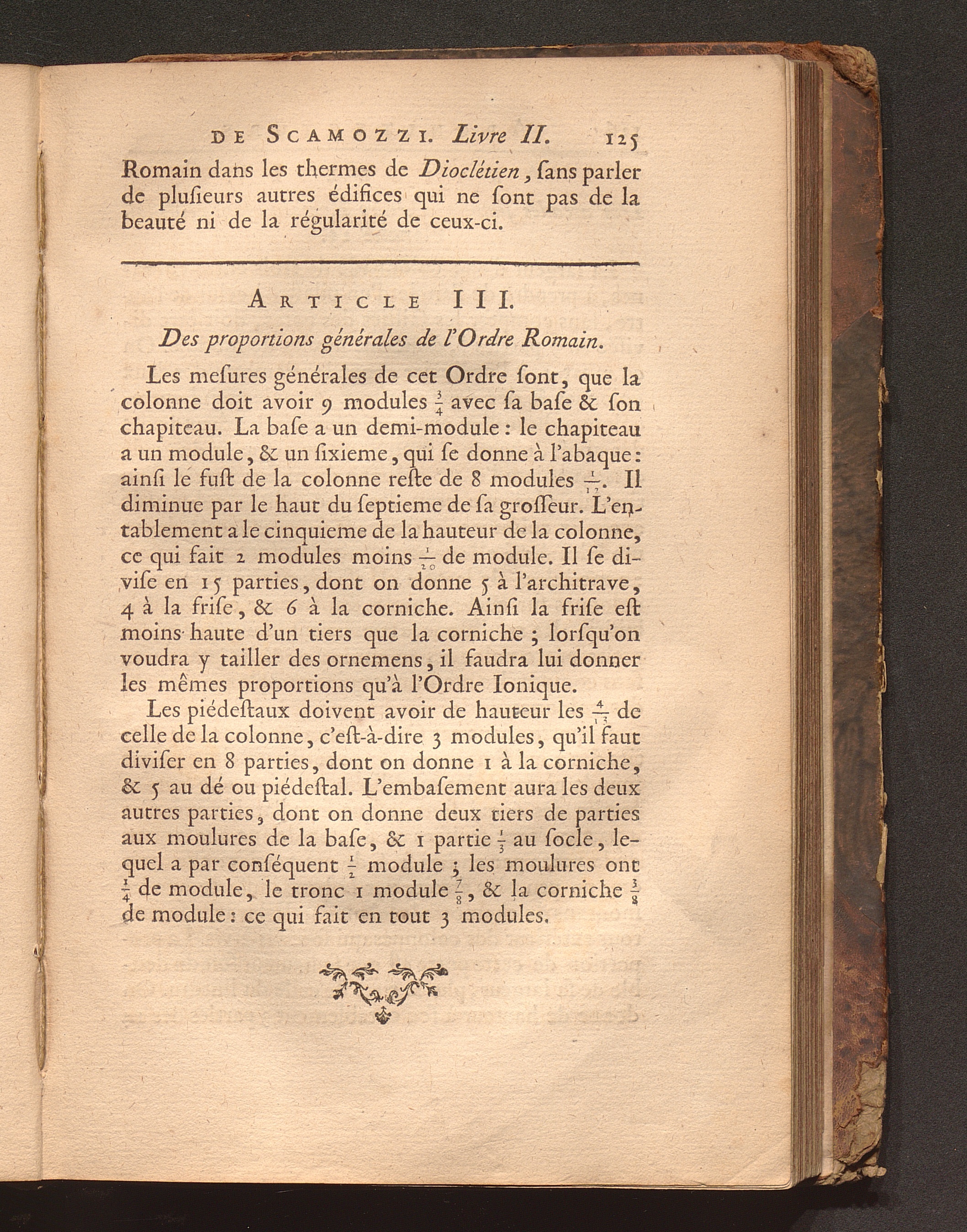 Art. III. Des proportions générales de l'Ordre Romain.
