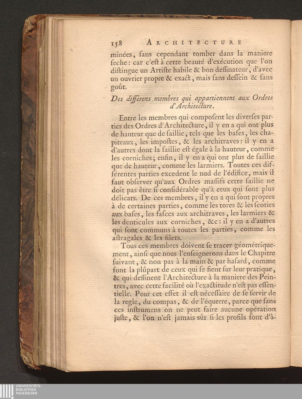 Des différens membres qui appartiennent aux Ordres d'Architecture.