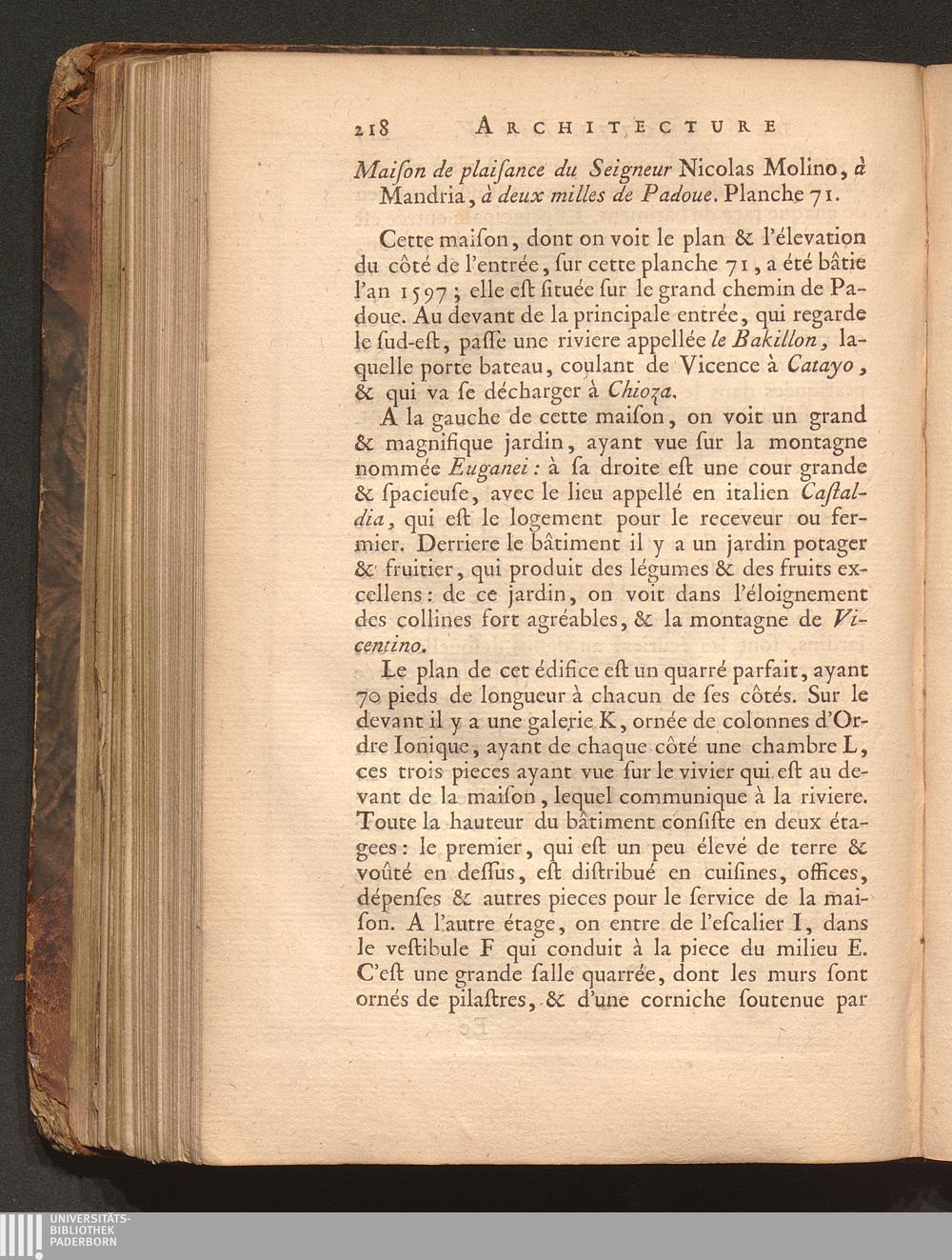 Maison de plaisance du Seigneur Nicolas Molino, à Mandria, à deux milles de Pado[...]