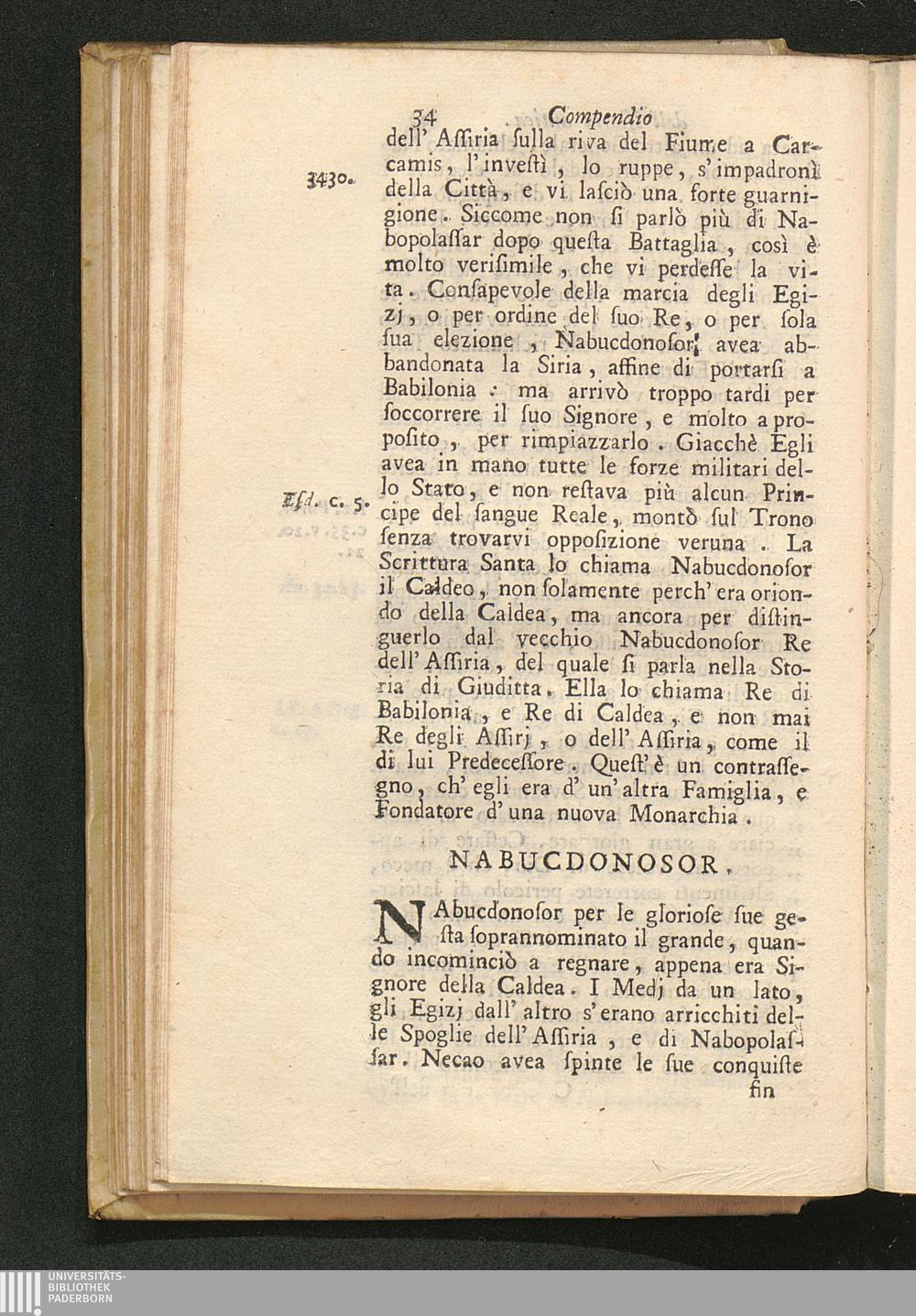 Compendio Della Storia Antica Ovvero Dè cinque Grand' Imperj che hanno preceduta la nascita di Gesù Cristo : Cioè Il I. dè Babiloniesi, e degli Assirj. Il II. dè Caldei. Il III. dè Medi, e dè Persiani. Il IV. dè Greci. Il V. dè Romani ; Aggiuntavi la Cronologia di quest' Imperj: una Carta Geografica, ed alcune note, che servono per chiarezza del Testo / Opera. Del P. Duchesne della Compagnia di Gesù Maestro dè Serenissimi Infanti di Spagna. Tradotta dal Francese