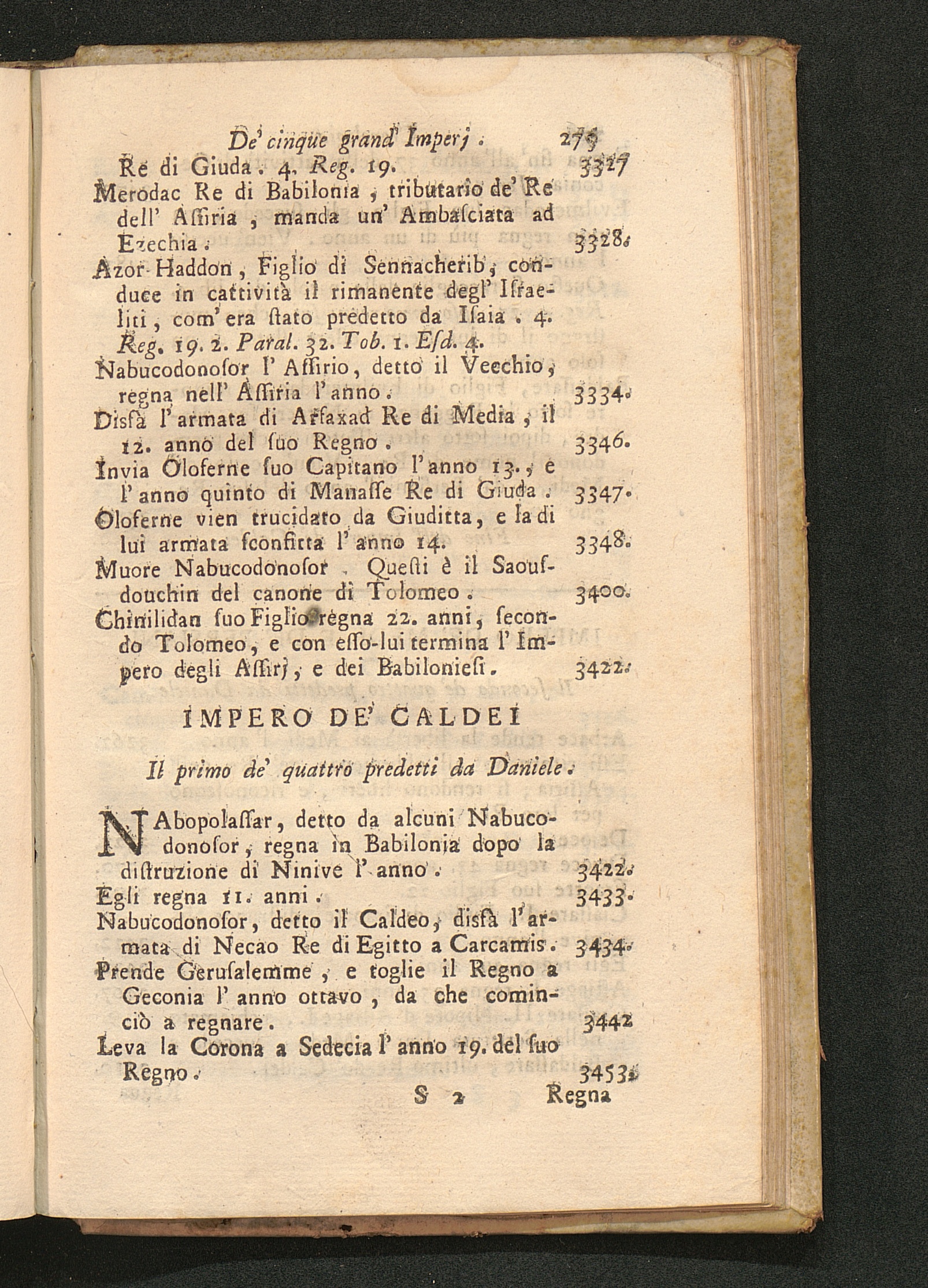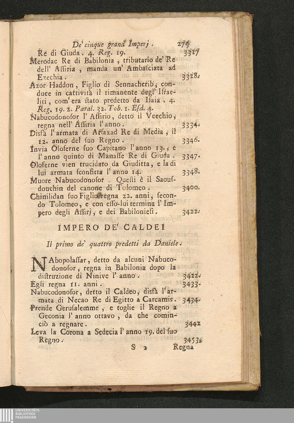 Compendio Della Storia Antica Ovvero Dè cinque Grand' Imperj che hanno preceduta la nascita di Gesù Cristo : Cioè Il I. dè Babiloniesi, e degli Assirj. Il II. dè Caldei. Il III. dè Medi, e dè Persiani. Il IV. dè Greci. Il V. dè Romani ; Aggiuntavi la Cronologia di quest' Imperj: una Carta Geografica, ed alcune note, che servono per chiarezza del Testo / Opera. Del P. Duchesne della Compagnia di Gesù Maestro dè Serenissimi Infanti di Spagna. Tradotta dal Francese