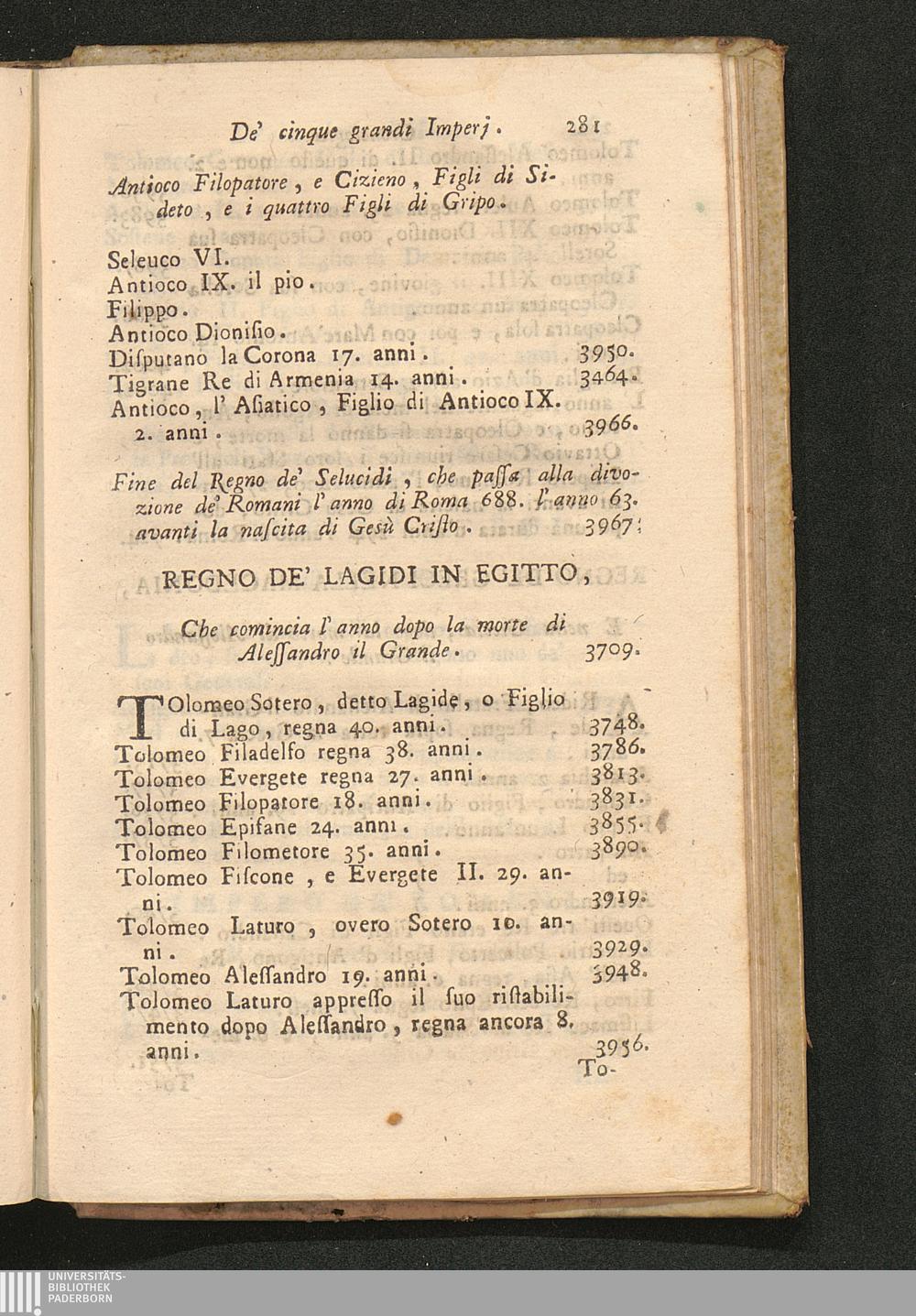 Compendio Della Storia Antica Ovvero Dè cinque Grand' Imperj che hanno preceduta la nascita di Gesù Cristo : Cioè Il I. dè Babiloniesi, e degli Assirj. Il II. dè Caldei. Il III. dè Medi, e dè Persiani. Il IV. dè Greci. Il V. dè Romani ; Aggiuntavi la Cronologia di quest' Imperj: una Carta Geografica, ed alcune note, che servono per chiarezza del Testo / Opera. Del P. Duchesne della Compagnia di Gesù Maestro dè Serenissimi Infanti di Spagna. Tradotta dal Francese