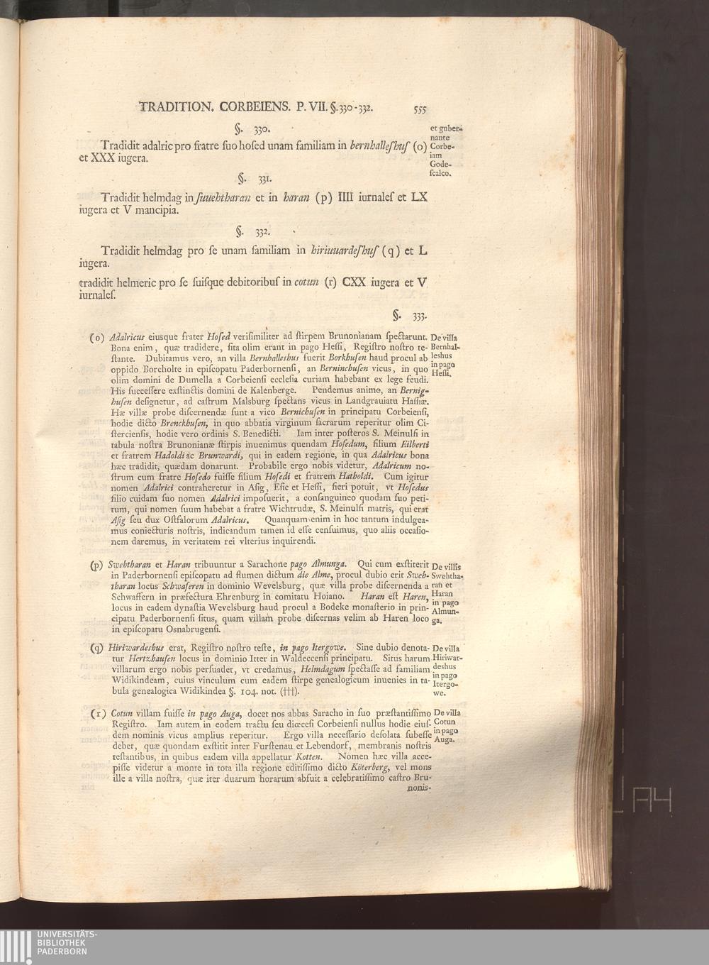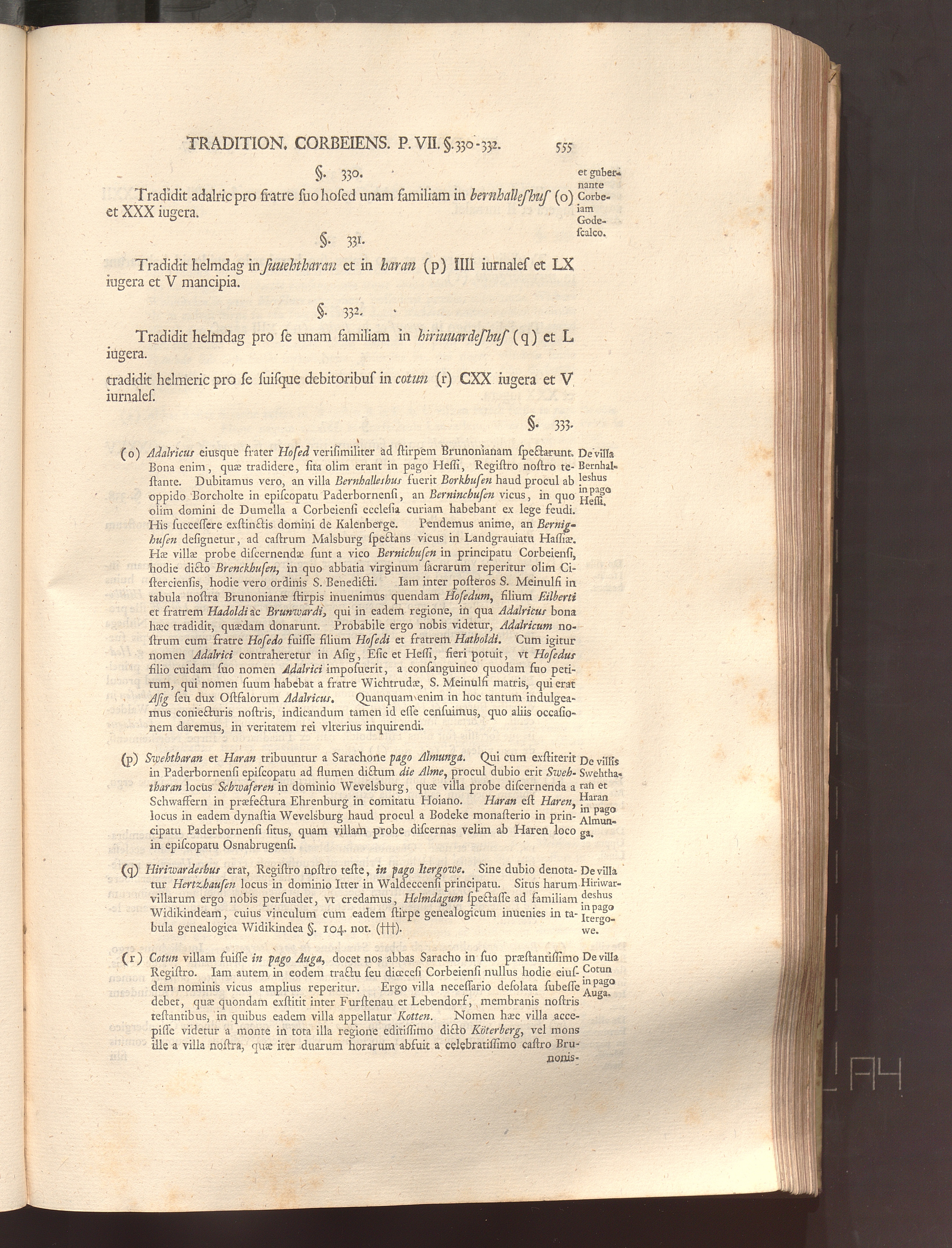 §. 330 - 333. De mancipiis et iugeribus traditis in villis Bernhalleshus, Swehtharan,[...]