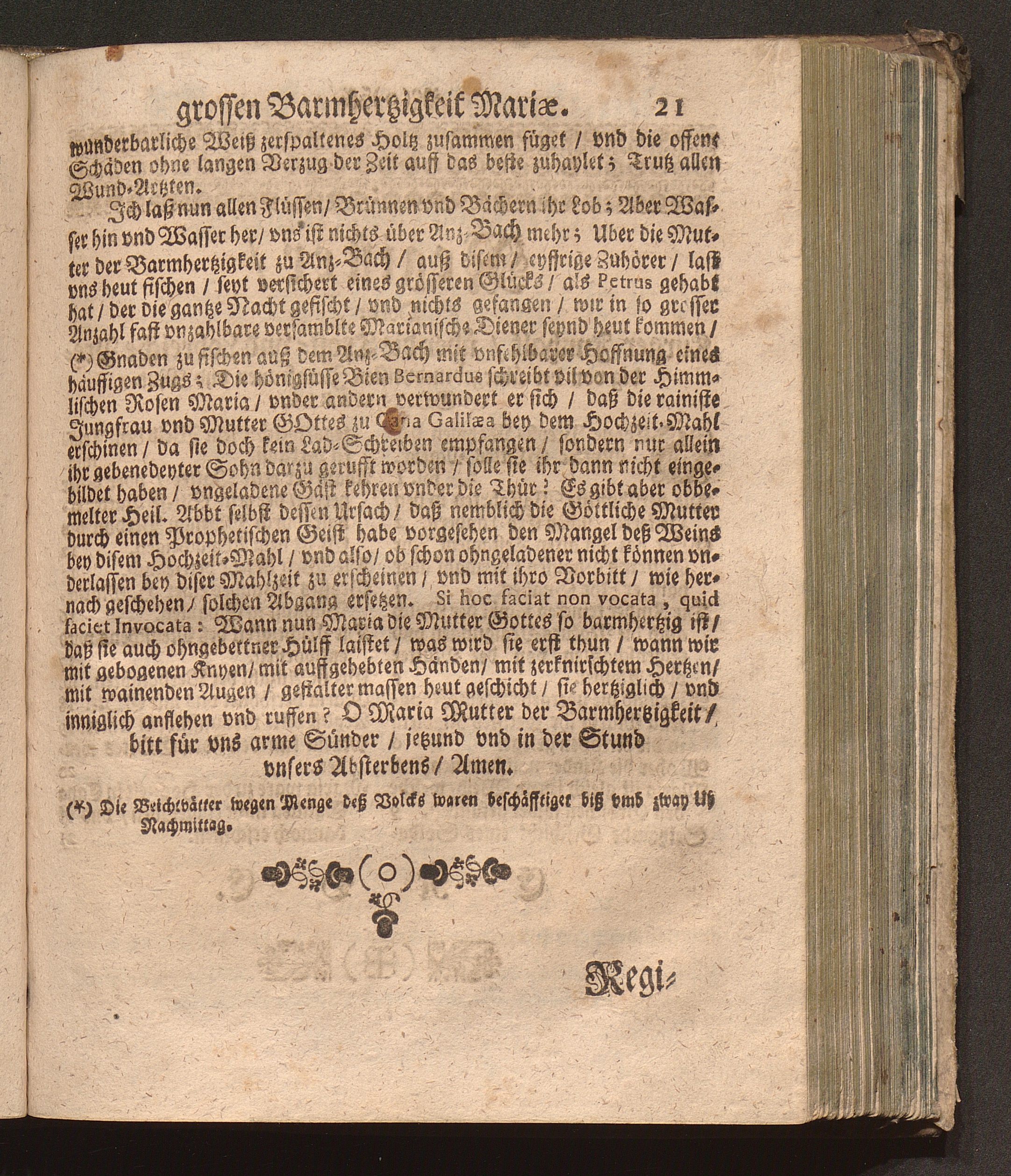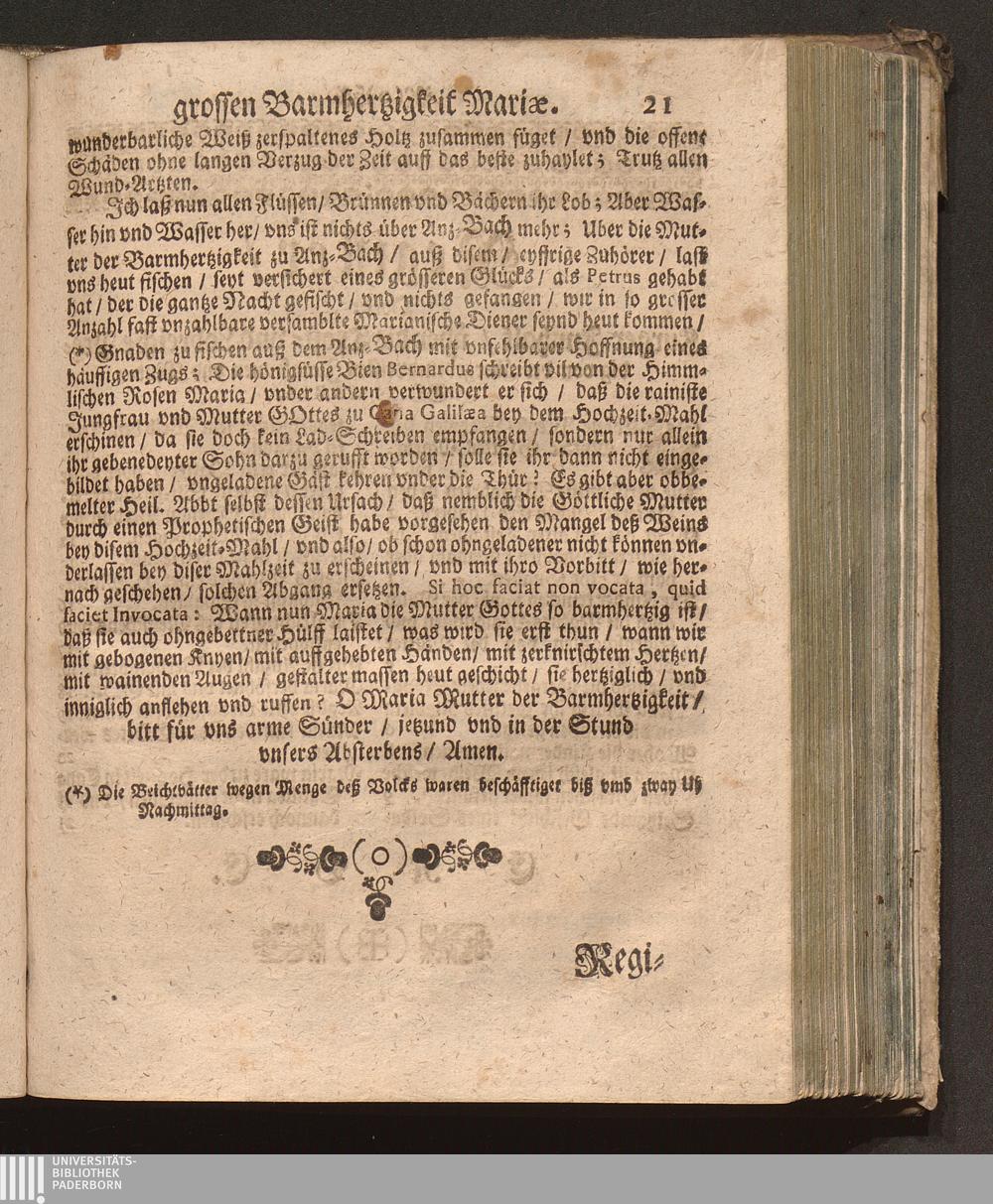 Der glückliche Fisch-Zug Jn Anzbach/ Das ist: Ein Trostreiche Predig von der überschwencklichen Barmhertzigkeit Der Mutter Gottes. Welche Den achten September an dero Gnadenvollen Geburts-Tag in dem vhralten vnd berühmten Gotts-Hauß zu Anzbach vor einer grossen Menge eyffriger Zuhörer gehalten/ Und nunmehr Auff viles Begehren zu sonderem Trost der Marianischen Hertzen auch in den Truck übersetzt worden / Durch Pr. Fr. Abraham à S. Clara, Augustiner Baarfüsser/ [et]c.
