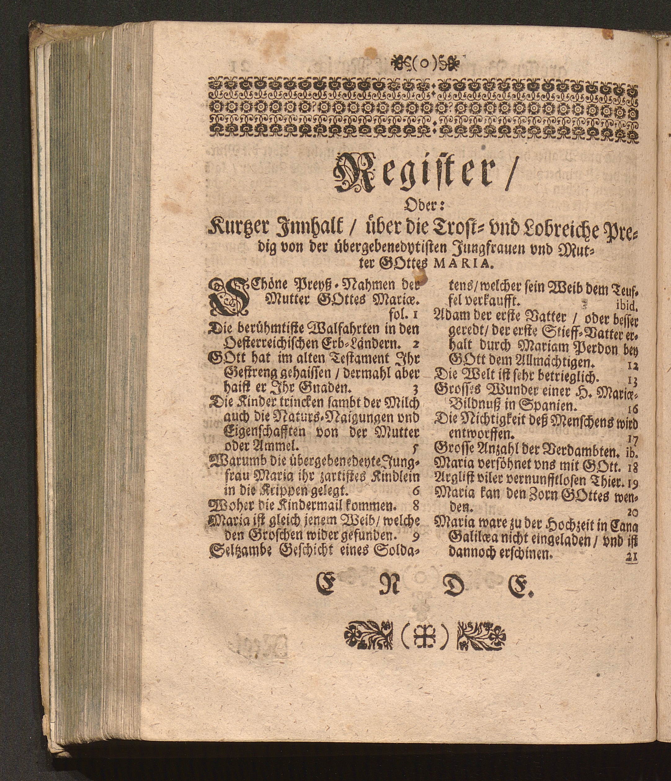 Der glückliche Fisch-Zug Jn Anzbach/ Das ist: Ein Trostreiche Predig von der überschwencklichen Barmhertzigkeit Der Mutter Gottes. Welche Den achten September an dero Gnadenvollen Geburts-Tag in dem vhralten vnd berühmten Gotts-Hauß zu Anzbach vor einer grossen Menge eyffriger Zuhörer gehalten/ Und nunmehr Auff viles Begehren zu sonderem Trost der Marianischen Hertzen auch in den Truck übersetzt worden / Durch Pr. Fr. Abraham à S. Clara, Augustiner Baarfüsser/ [et]c.